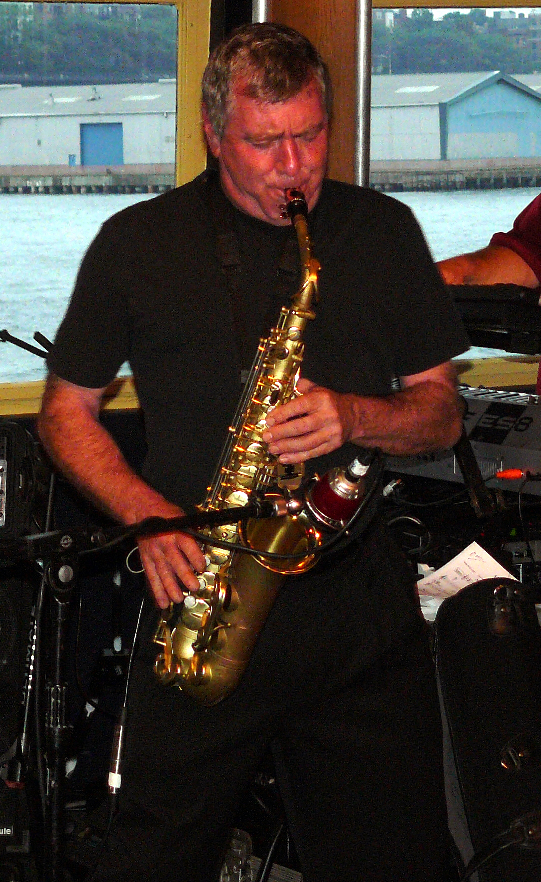 I was eating my buffet dinner, and then out on the bow, when Jay was on soprano sax on “Simple Pleasures” and “Get Busy,” but here he is on both alto and soprano on “Funkyard Dog”: