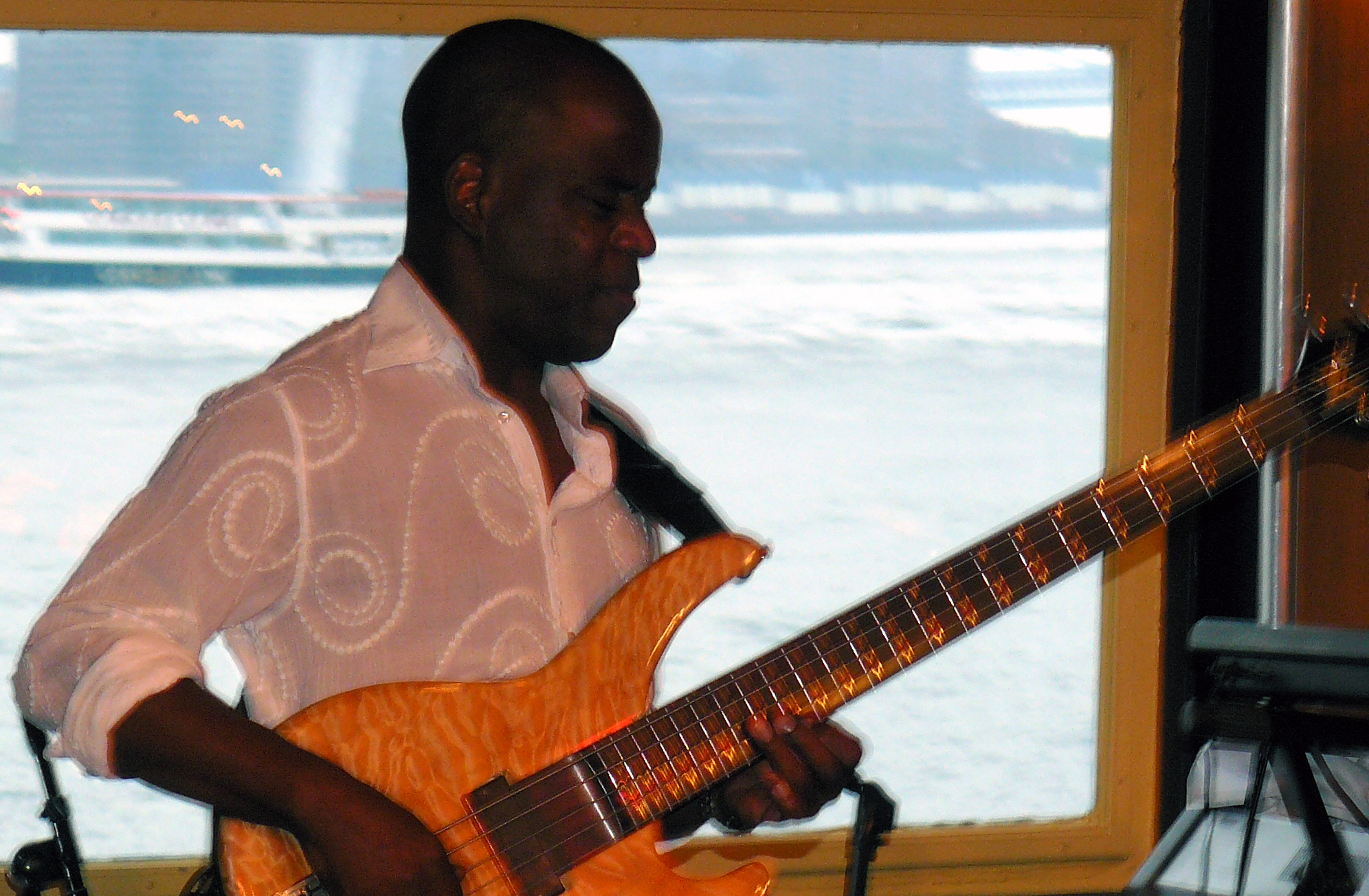 Outside of Dharma All Stars and Natural Selection (saxophonist Mario Cruz’s band) gigs, I have never been as close to the band while they’re playing as I was last night. Before I took pictures of them, I went out to the bow of the ship. These are the pictures that stood out: