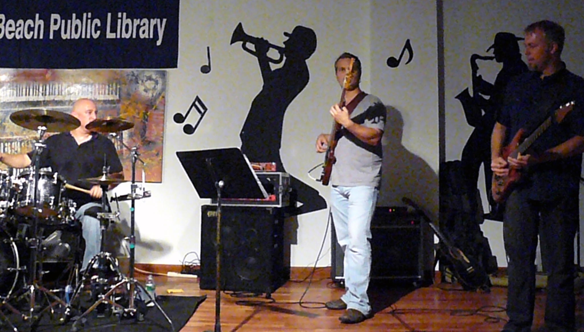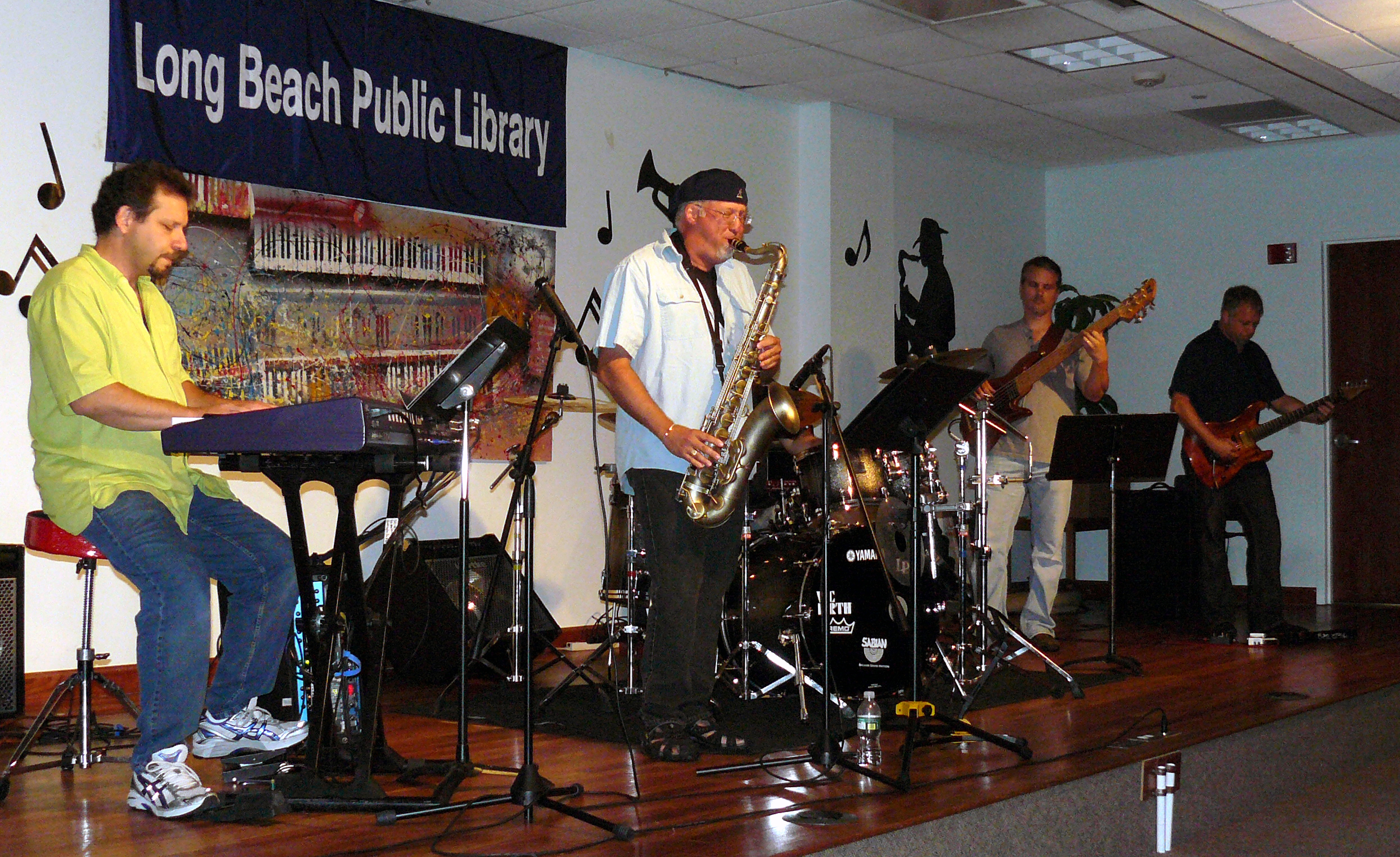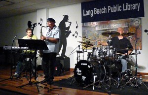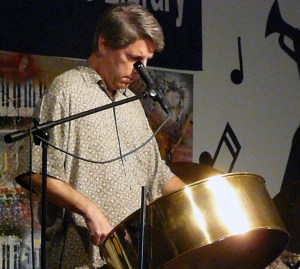 Then, it was off to the Long Beach Public Library for the Jazz Festival, which was in its last day of three. The sixth annual festival was produced by guitarist and stick player Steve Adelson, who multiple performances on Friday and Saturday. Before the Dharma All Stars performed, it was steel pan player Alan Bates’ turn with his Island Breeze Caribbean Ensemble.