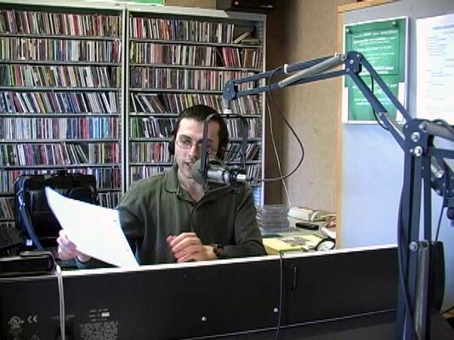 The game, and subsequent postgame coverage, ended much sooner than I, and several alumni, thought it would. So, instead of coming on the air at 3:30, I came on at 3:00. Luckily, I found a handful long tracks on the CDs I brought for the original playlist to fill the extra time. Here are some camcorder vidcaps of my show, as seen in the video I linked to at the top of this recap: