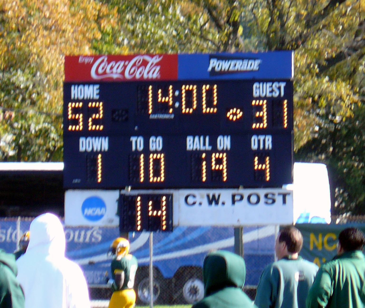 On the field, the C.W. Post Pioneers football team were playing the Millersville Marauders.