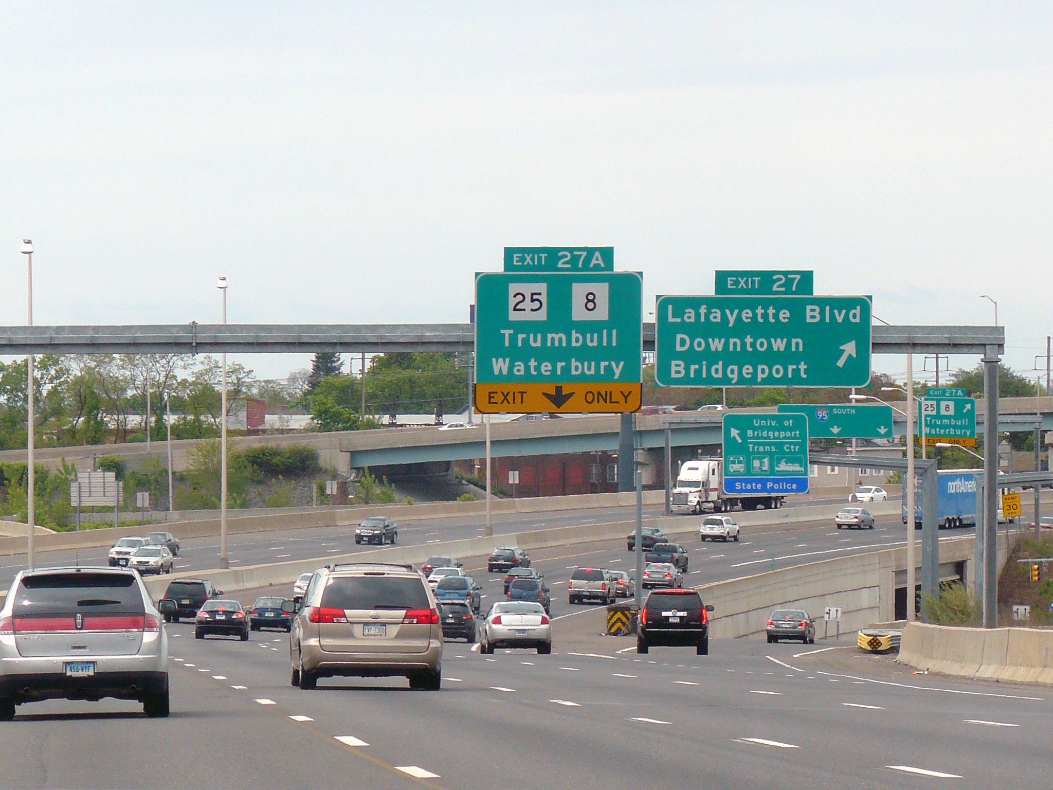 I-95 south through Bridgeport after crossing the Pequonnock River: