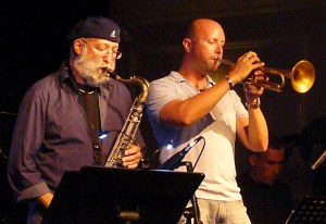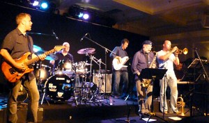 Last night, I returned to a packed Mirelle’s restaurant in Westbury, New York, to see drummer John Favicchia’s band, Dharma All Stars.