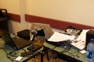 At 6:30, I headed to the Pioneer Room in Hillwood Commons to set up for my show from the WCWP Homecoming Dinner.