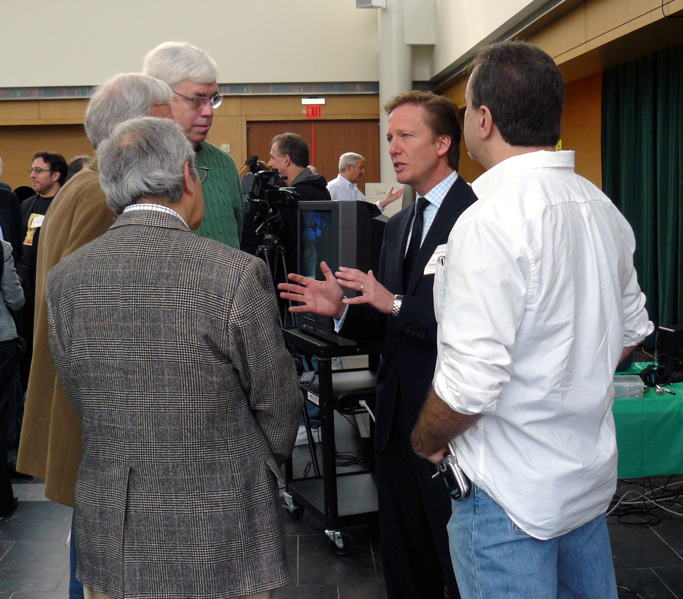 WLNY TV 10/55 anchor Michelle Imperato introduces herself to John Bohannon; David Plotkin of 1010 WINS: