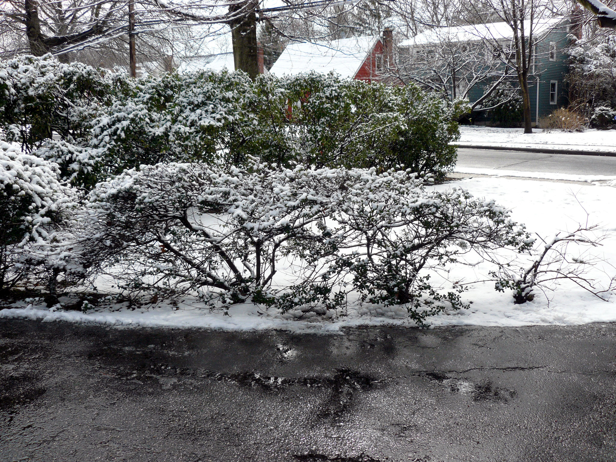 A wintry mix the day before turned to sleet and freezing rain (with a few rumbles of thunder) before turning to wet snow. The results were an inch or two of ice and about 12 inches of snow.