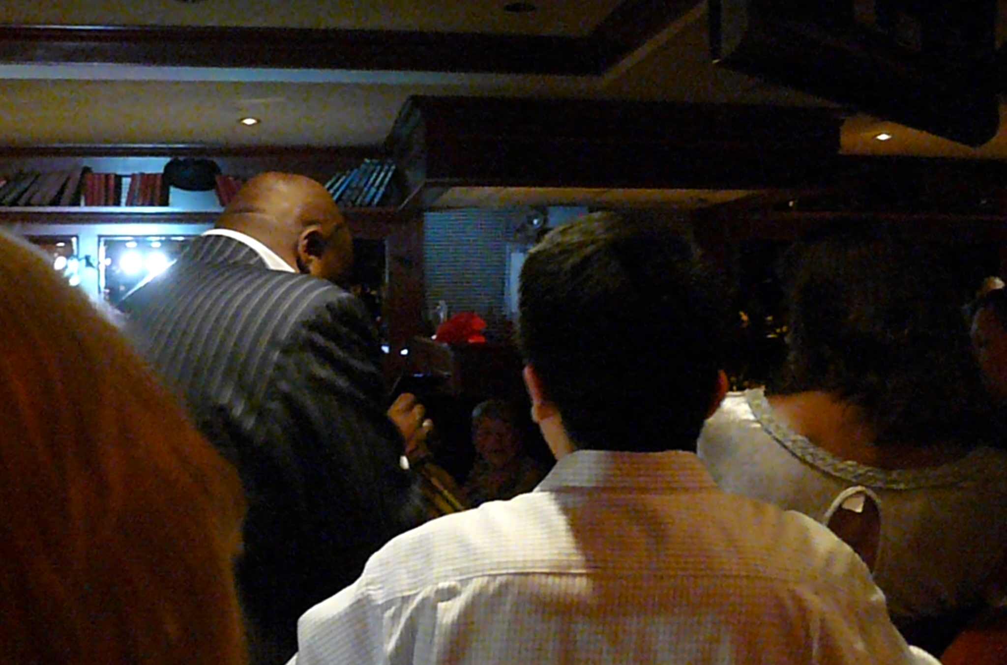 Once the doors opened, the seats at the tables and bar (where I sat) gradually filled up. There were few empty seats left by show time. After an introduction from Eulis Cathey of WBGO (whose show I put on for a few minutes while writing the early part of this post), it was time to begin.