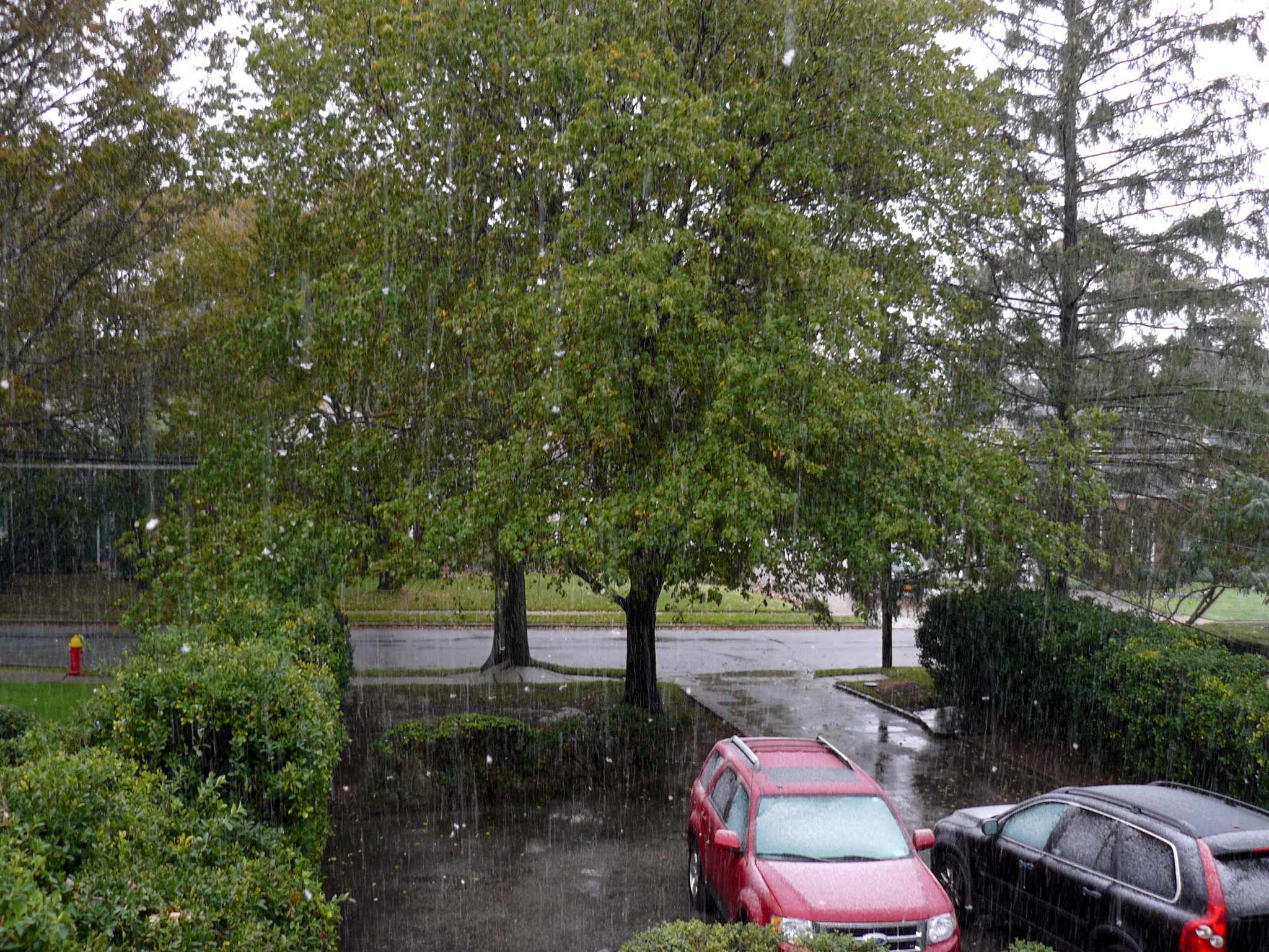 What was billed as “Snowtober” was “Rain-and-snowtober” or “Wintry mix-tober” in Wantagh for much of yesterday and last night. Just to the north and west (within Nassau County), more wet snow fell. The precipitation changed to all wet snow after 11PM.