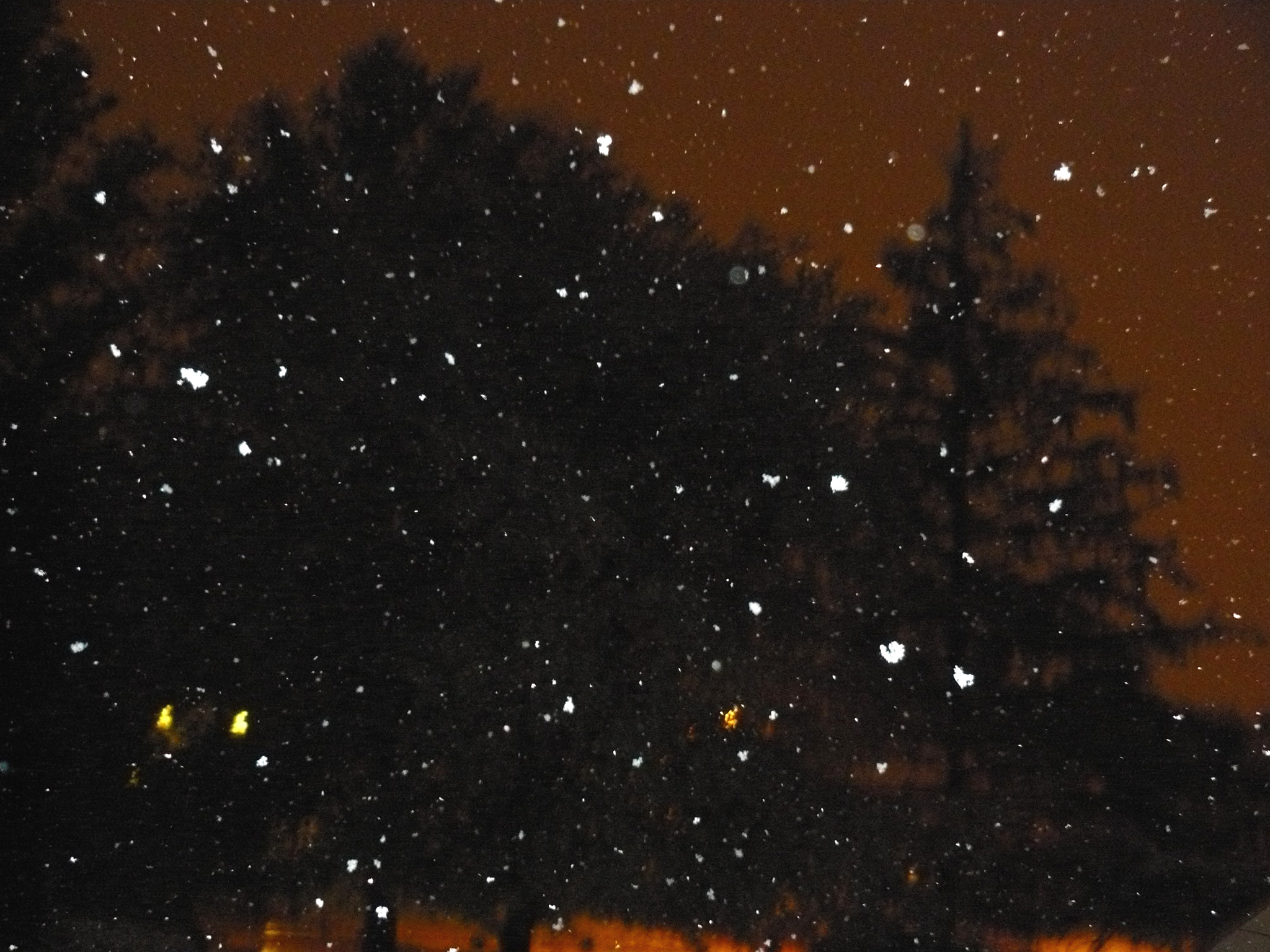 Since it was the first snow we had in seven months, I took out my camera and took a few pictures. The first three pics are from around noon: