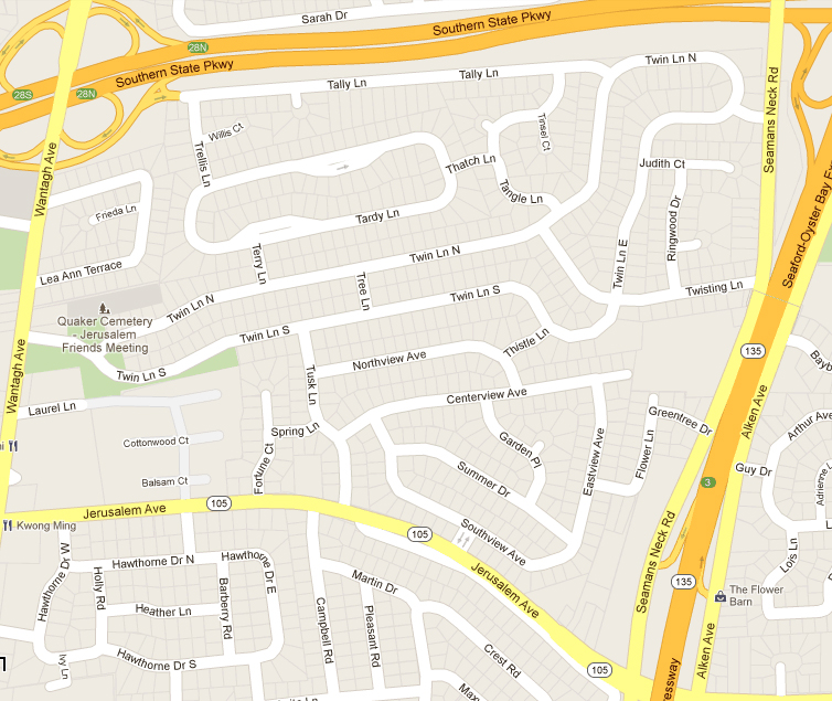I told him it helped a lot. Via a screencap of Google Maps, this is North Wantagh’s “T” section: