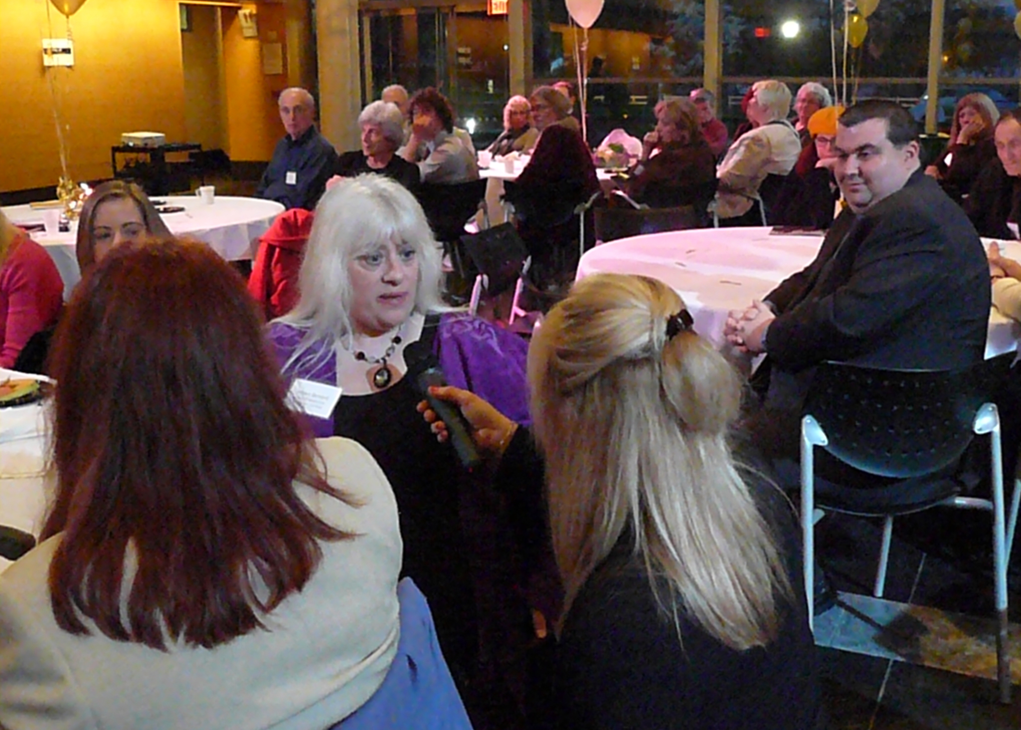 Twice during the ceremony, Tracy Burgess interviewed a WCWP alum. First up was Bernie Bernard: