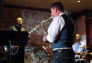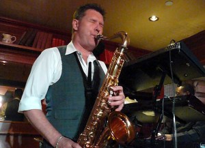 Two nights ago, for the second Saturday in a row, I saw saxophonist Paul “Shilts” Weimar perform. Last week, Shilts was part of keyboardist Jay Rowe’s tenth annual Smooth Jazz for Scholars benefit concert. This time, he played solo at the Houndstooth Pub, a few blocks north of Penn Station. It was a busy night in that area. In addition to Shilts, there was the Bolder & Fresher Tour (Bill O’Reilly and Dennis Miller) show at the Town Hall six blocks north (and two east) of Houndstooth, and Game 7 of the NHL Stanley Cup Eastern Conference Semifinals was taking place at Madison Square Garden. The New York Rangers and Washington Capitals alternated wins and losses in the first six games and the winner would face the New Jersey Devils in the conference final beginning two nights later. Both floors of Houndstooth had TVs tuned to the NBC Sports Network where Rangers and Caps fans alike that could get into MSG watched.