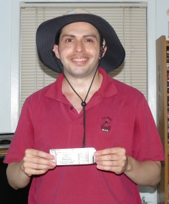 6:06 PM: “After getting the trophy, Finchy [one of Ian’s nicknames] interviewed him. He ‘couldn’t be happier,’ ‘overjoyed.’ He thanked volunteers, fans, and wife. After the interview, he hoisted the trophy.” His cousin Heidi, of the soon-to-launch Time Warner Cable SportsNet in Los Angeles, was also there.