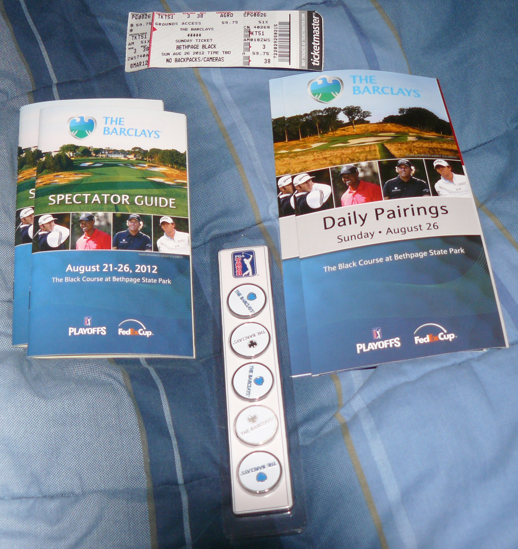 My ticket stub, pins, and two copies of both the spectator guide and final round pairings: