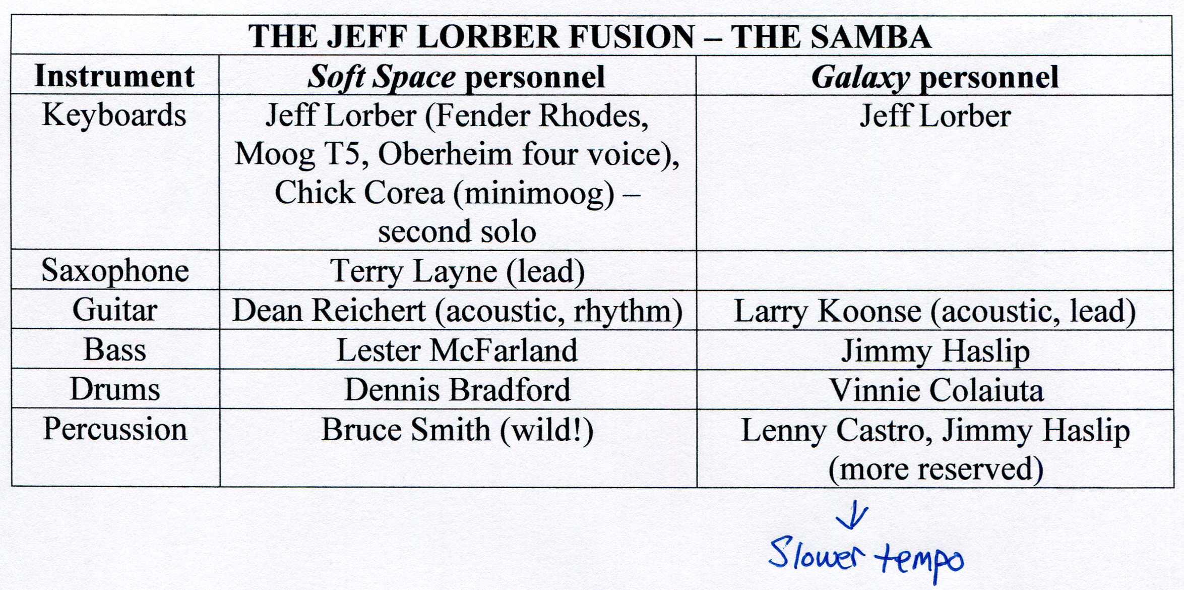 The “separate page” with the Jeff Lorber Fusion comparison table (click to view larger):