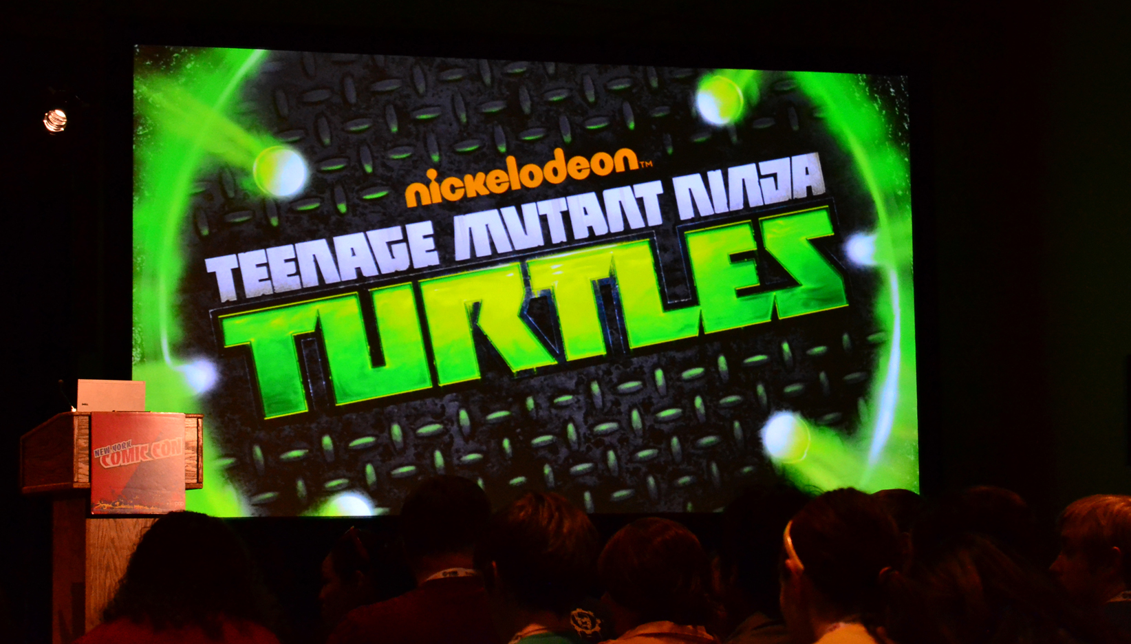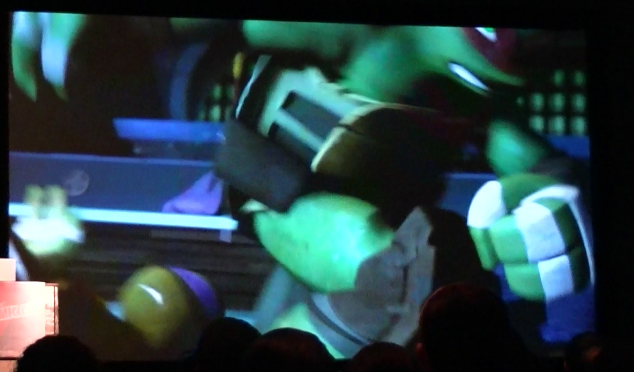 The panel began at 6:47 with the TMNT title sequence projected on screens and through theater-style speakers. The crowd erupted in cheers as Leonardo, Raphael, Michelangelo, and Donatello approached the dais.