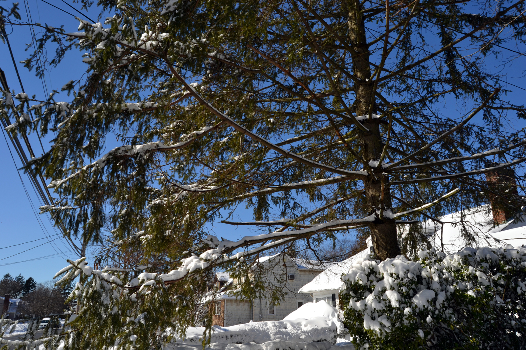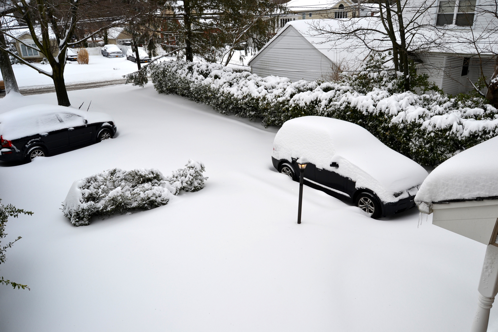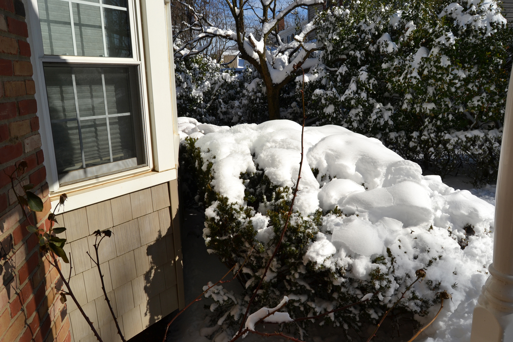 By the time I woke up in middle of Saturday morning, snow had ended and skies were slowly clearing. As I looked out my windows before going downstairs to shovel, this is what I saw: