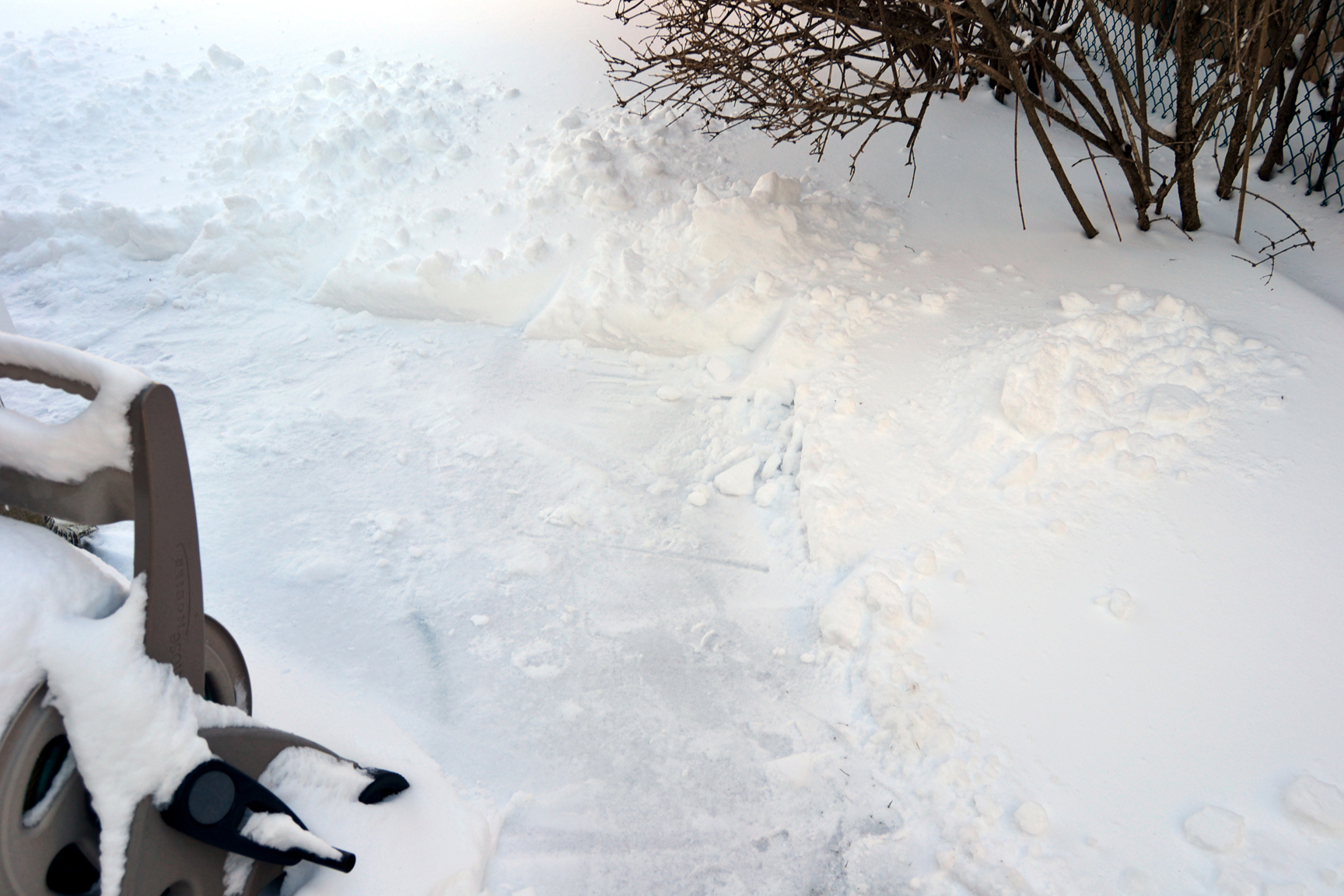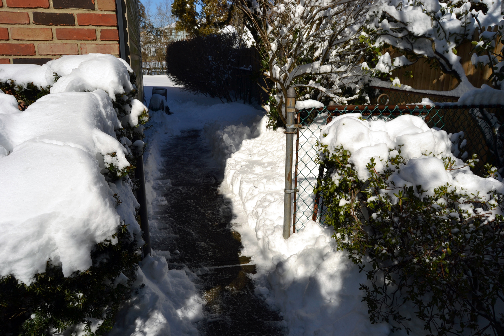 After shoveling paths to the backyard and an extra path to the curb, I took out my Nikon D3100 and shot these pictures: