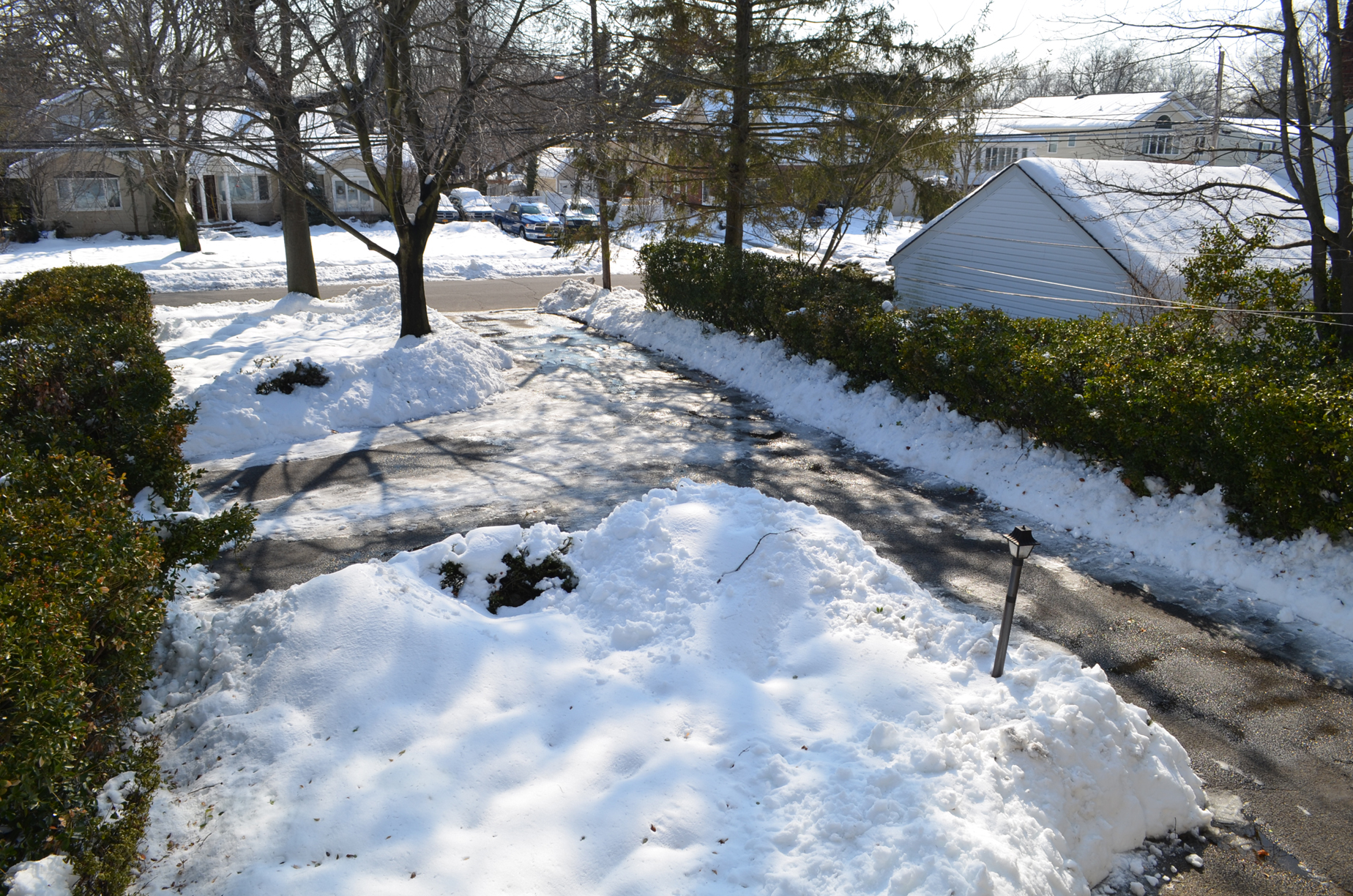 A couple of inches fell on February 9, but were powdery and light. It was nonetheless hard to shovel because of the frozen slush in the driveway from the previous two storms.