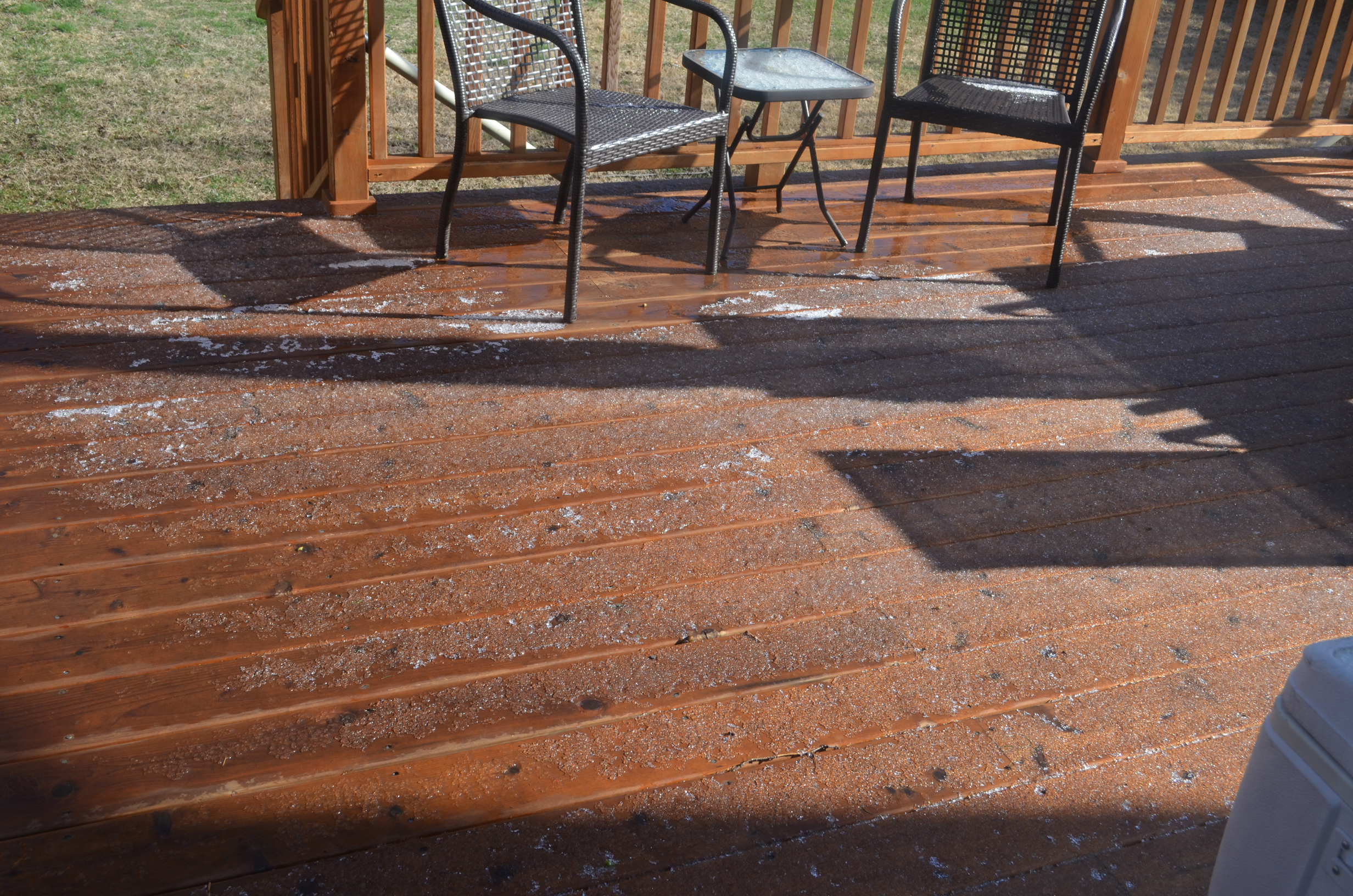 4/16 UPDATE: It wasn’t. A shot of unseasonably cold air behind a cold front turned any precipitation to sleet or wet snow overnight. Temperatures were near freezing at the time. It dropped a quick coating, which I found on my sister’s car and the backyard deck when I woke up after sunrise: