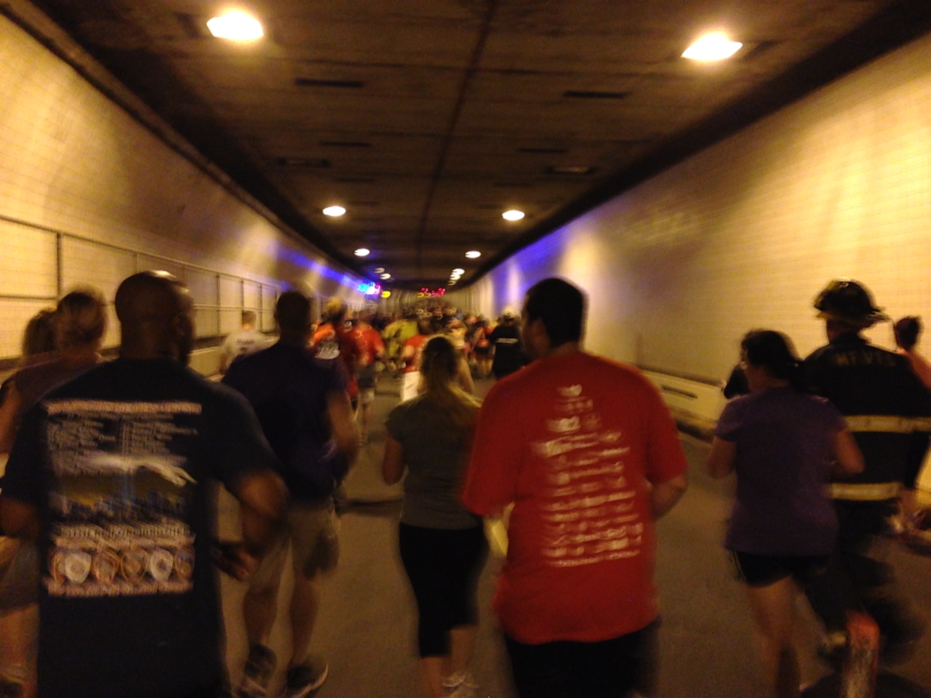 As I ran and walked through the tunnel, music was pumped in through speakers and various runners yelled patriotic chants. It was surreal, but I enjoyed it.