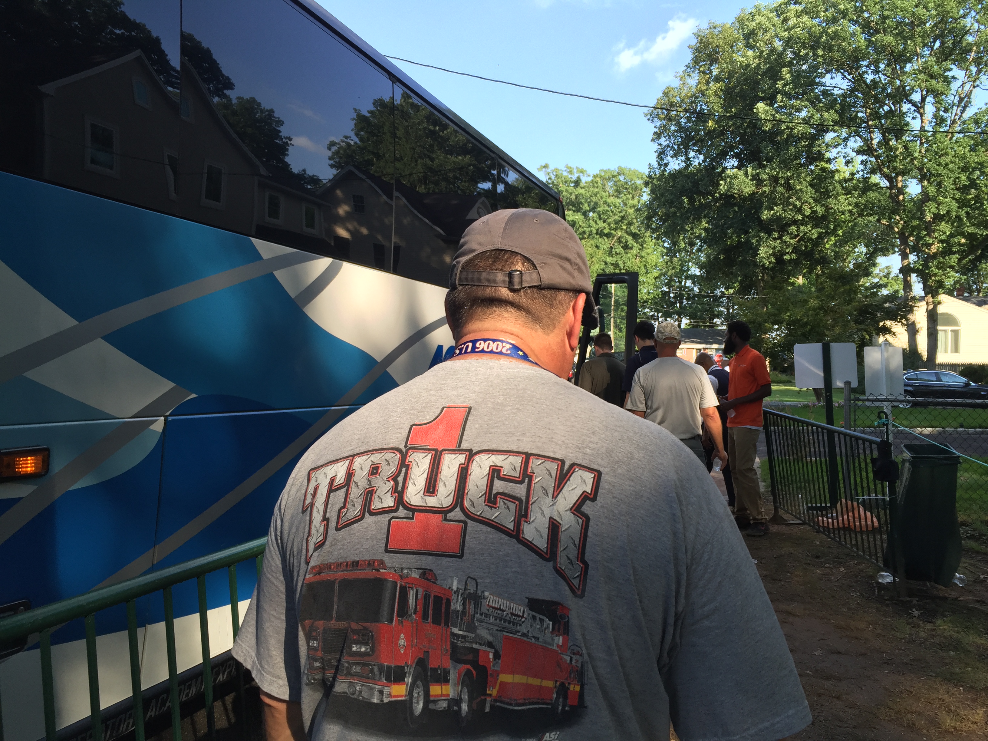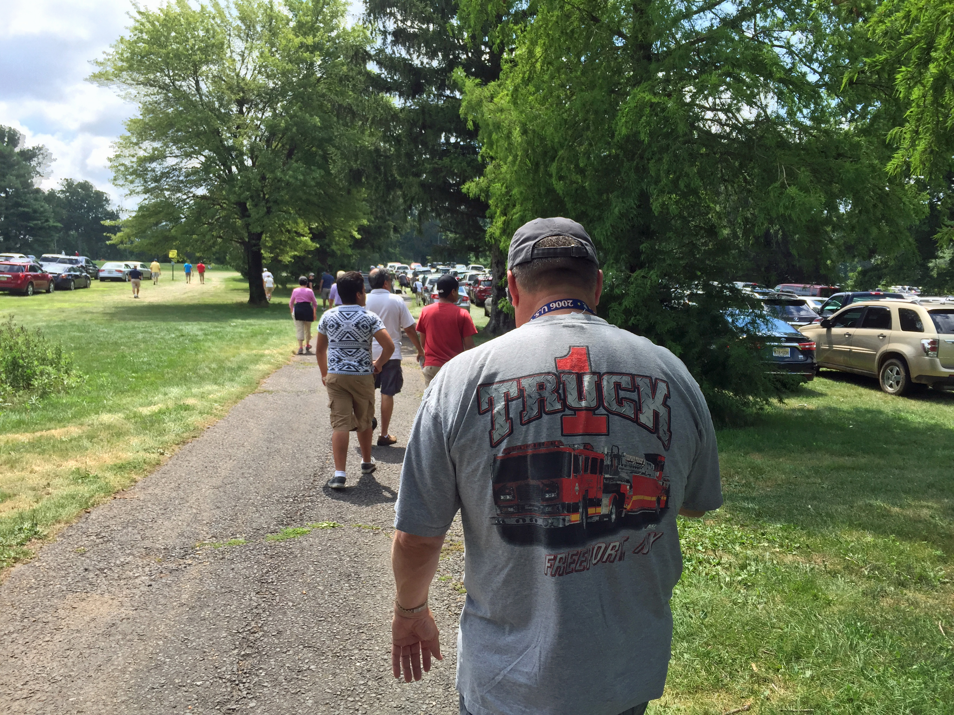Rain was in the forecast for Thursday night and yesterday, which I thought would mean no trip or a wasted trip. But play was only delayed 45 minutes and the rain subsided shortly before we left Wantagh around 10AM. General parking was about a half hour away from Baltusrol at Oak Ridge Park in Clark, New Jersey. We arrived there a little after noon.