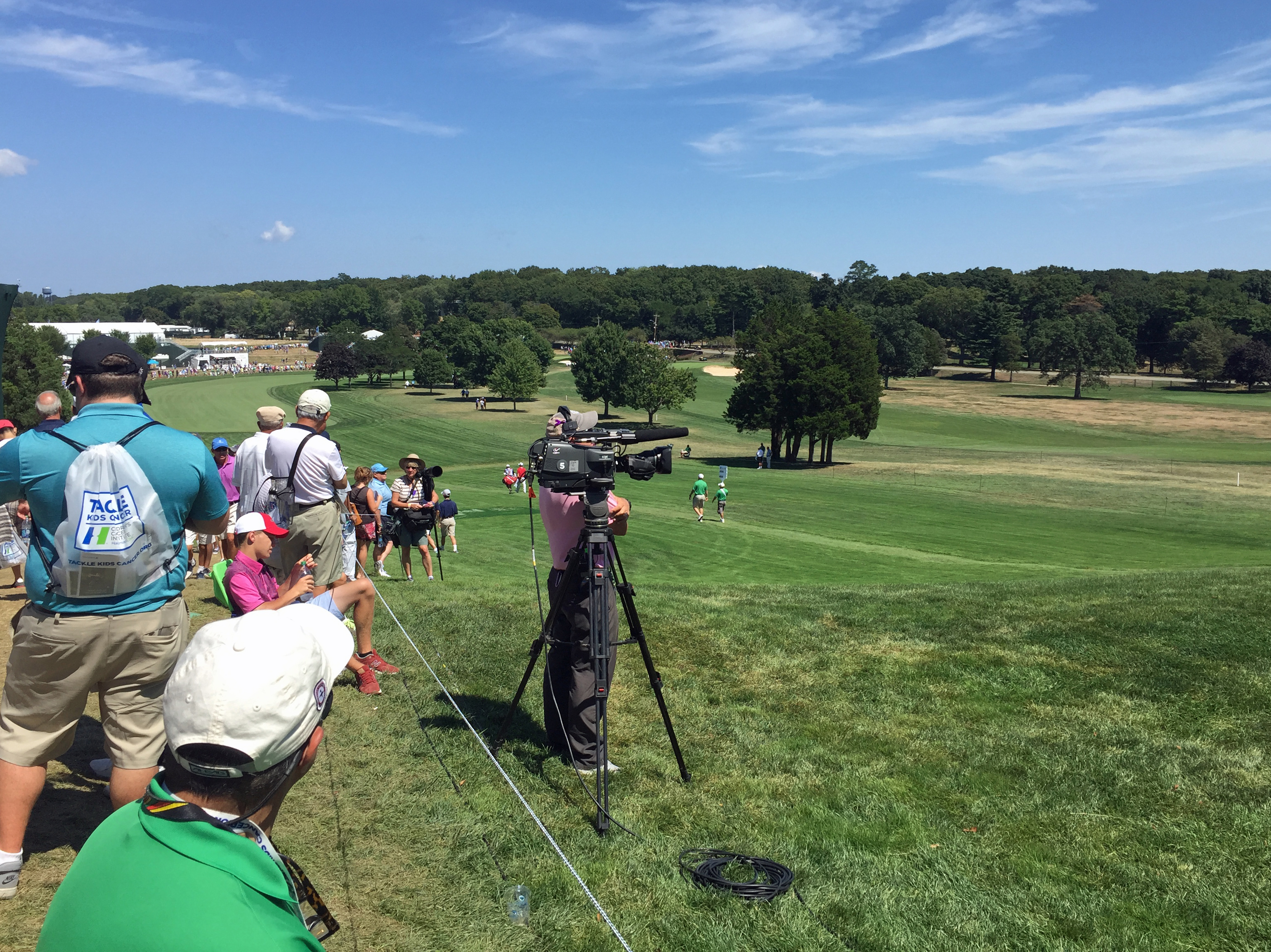 We stopped at the 18th fairway to watch Phil Mickelson and Olympic gold medalist Justin Rose finish their round: