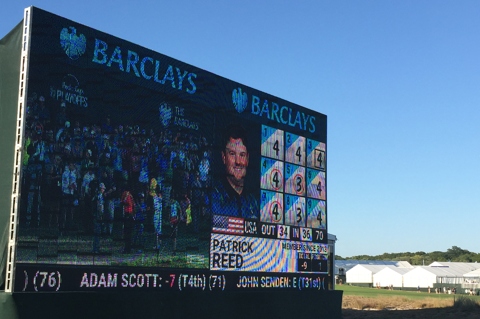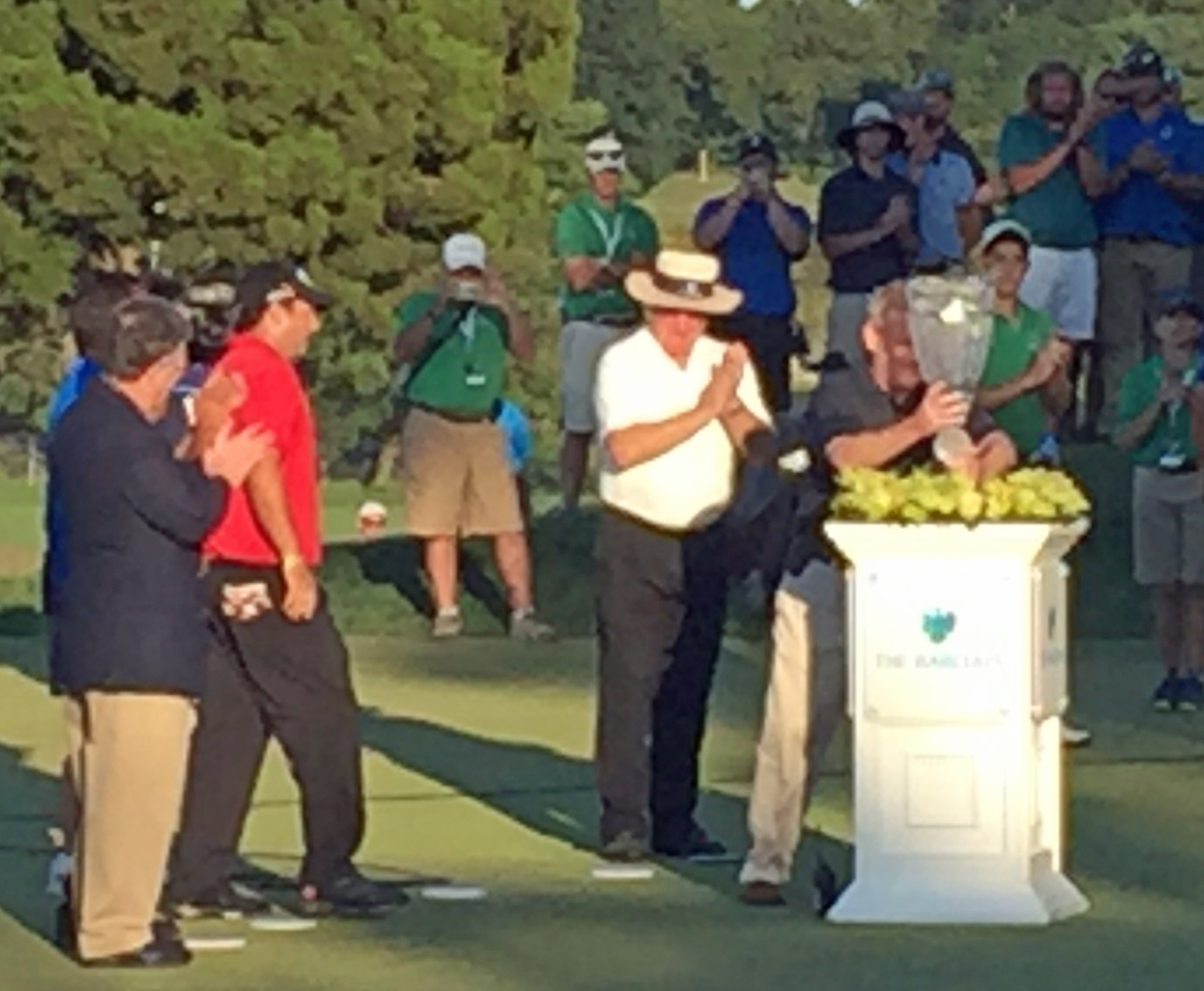We walked closer to the green for the trophy presentation (not televised), which came after Reed signed his scorecard.