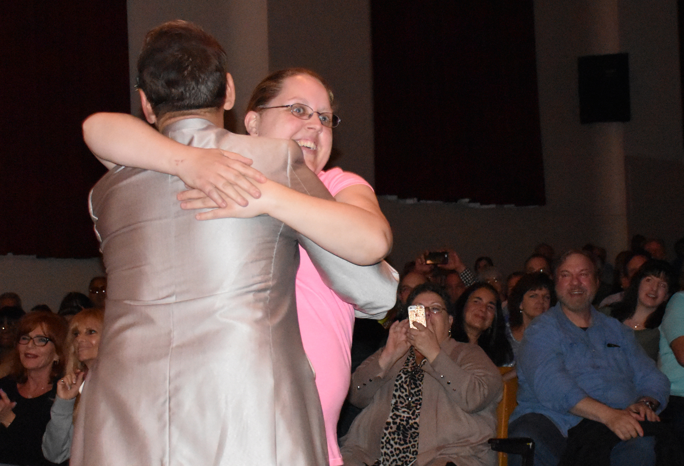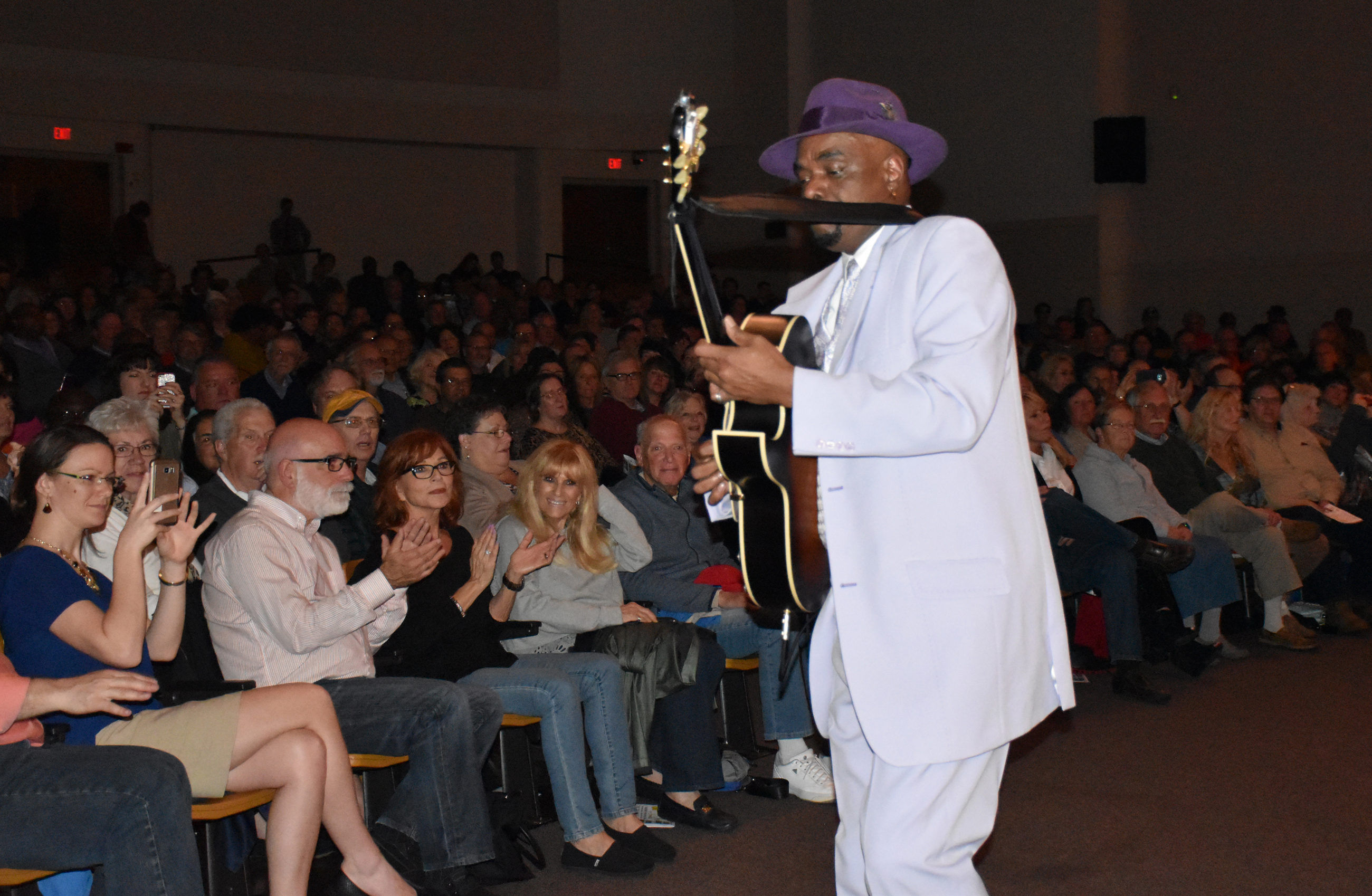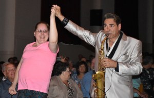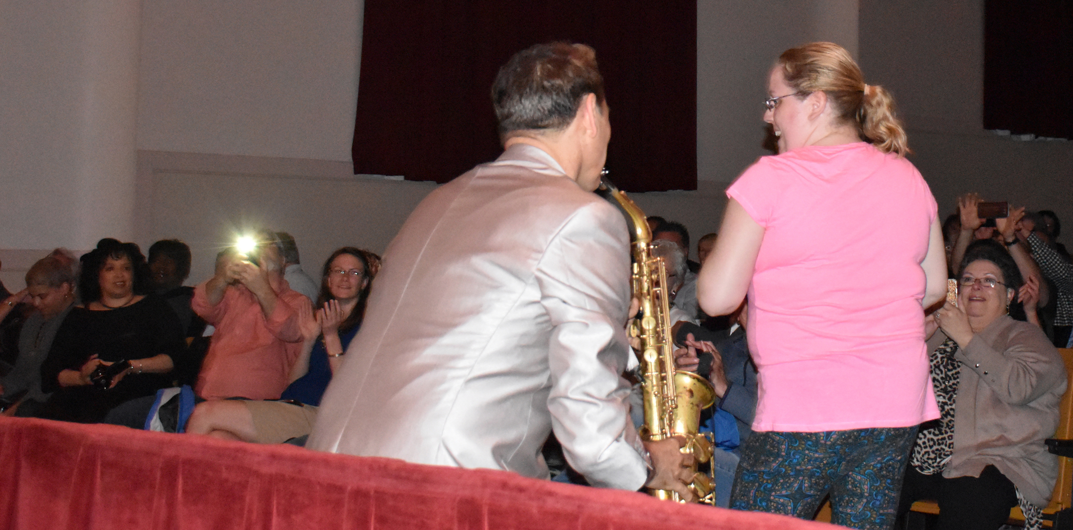 After “Bumpin’ on Hollywood,” Will Donato went to the lobby to start “Funkability.” He worked his way through the audience, picking out my friend Kelly along the way to the stage: