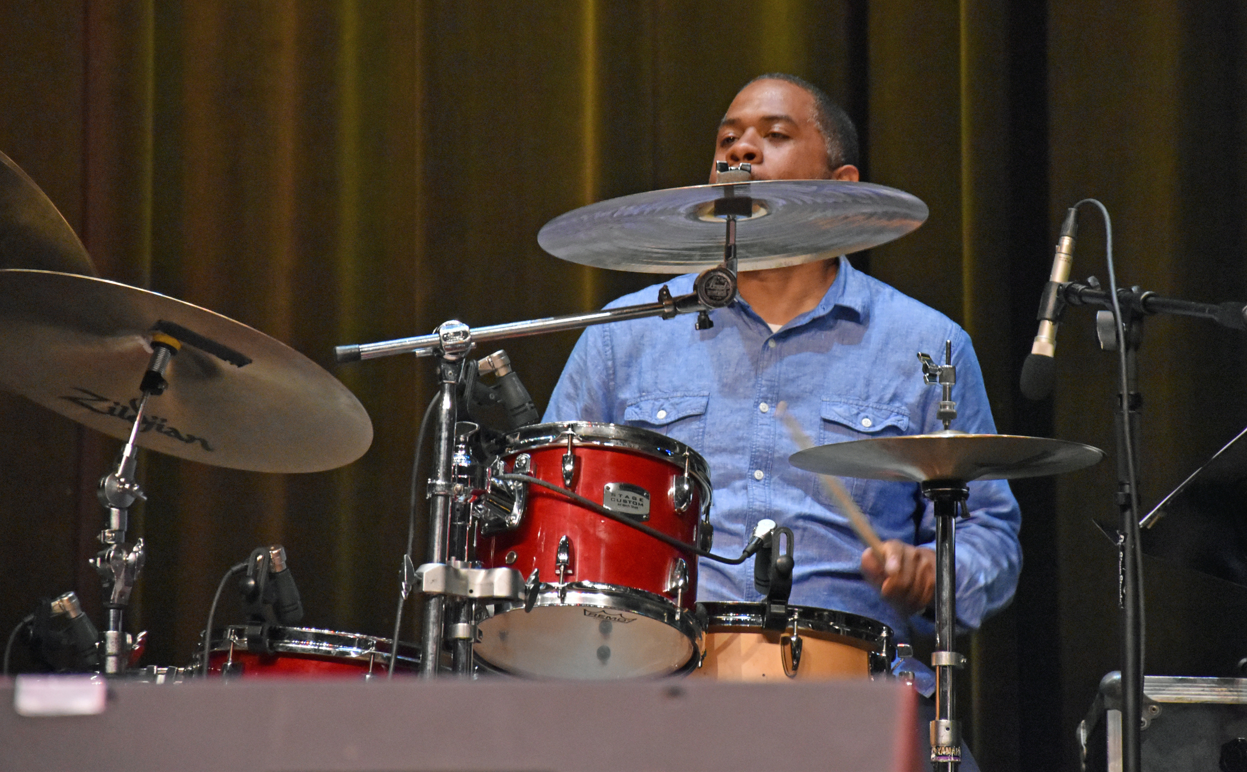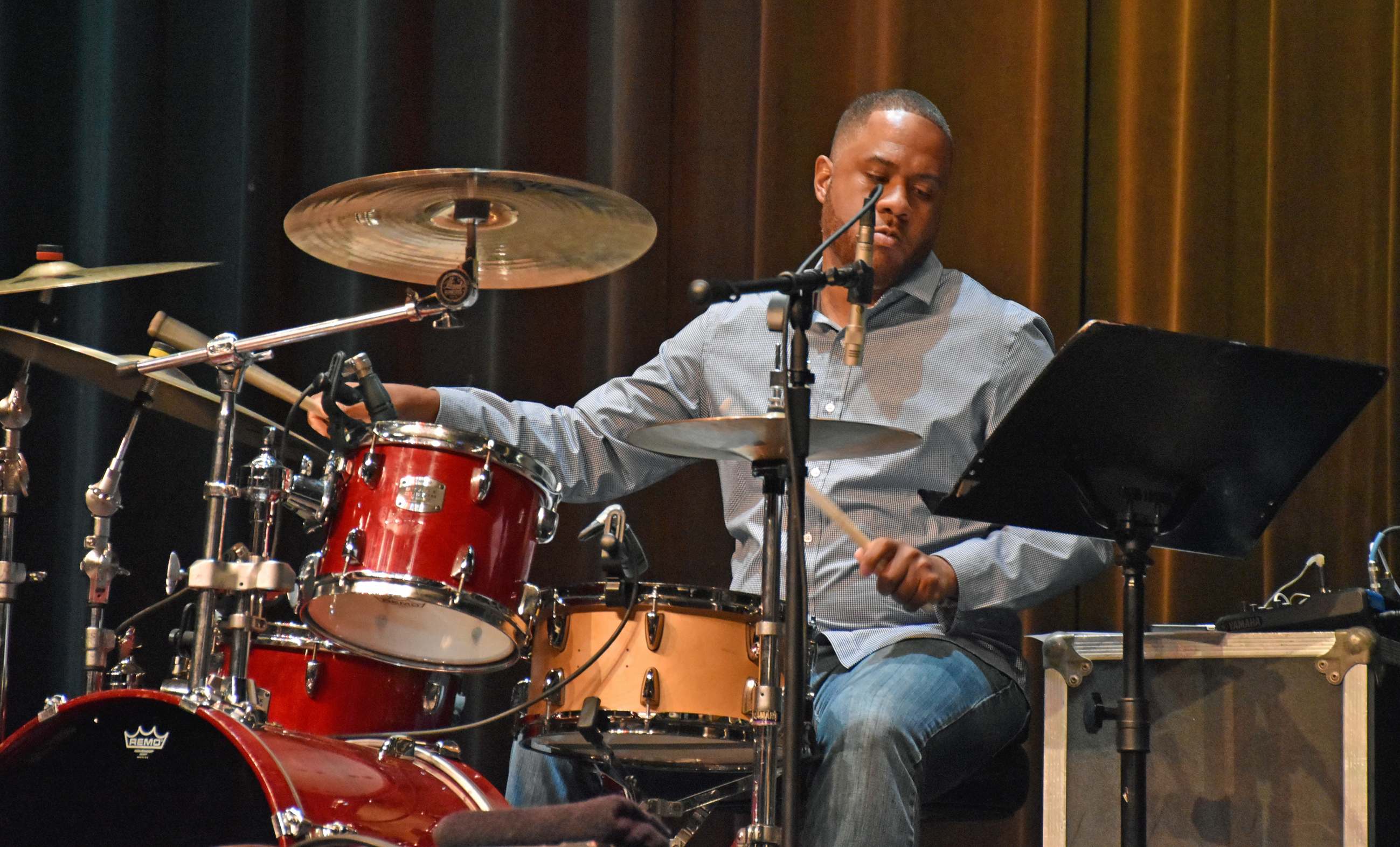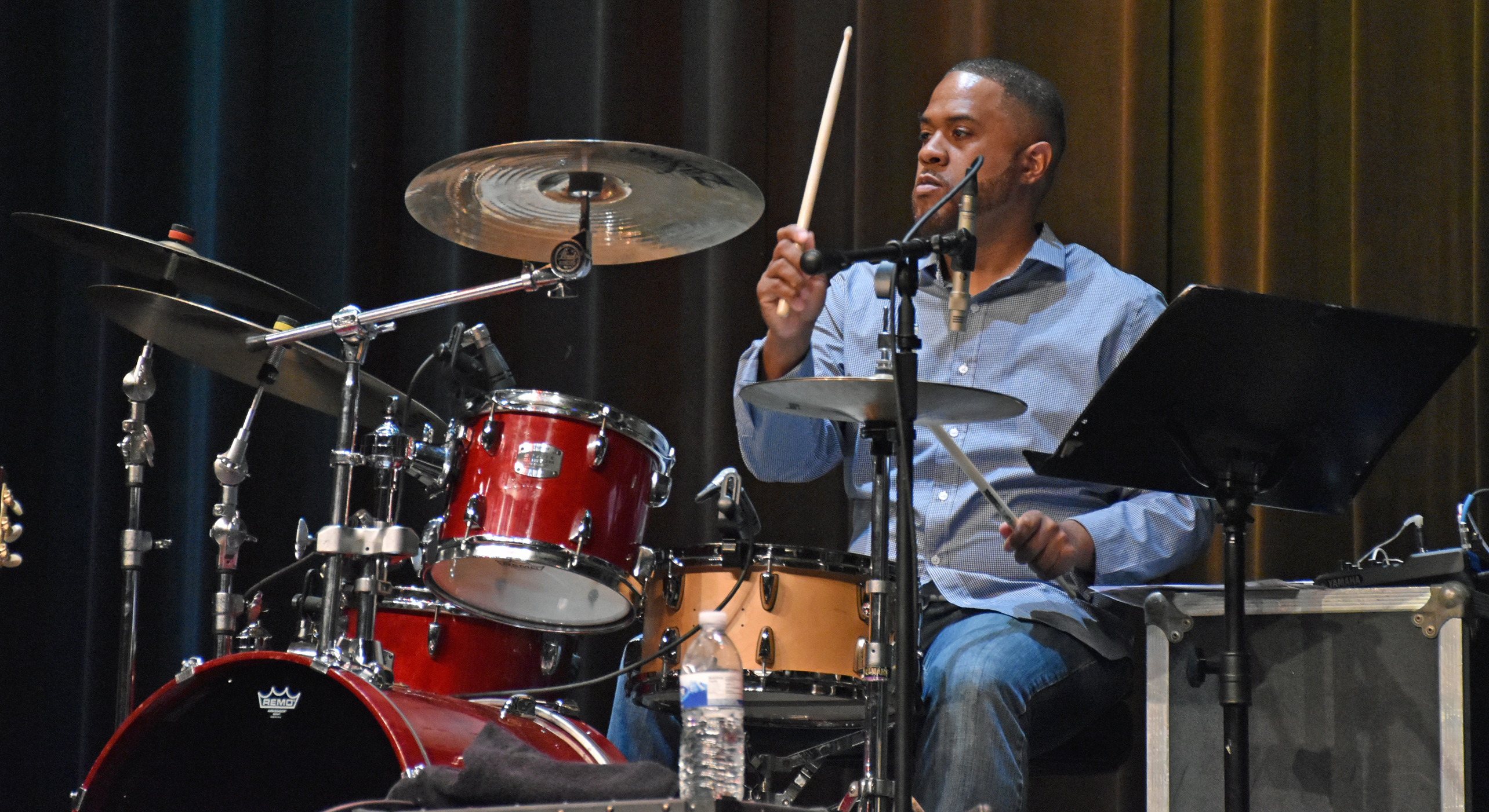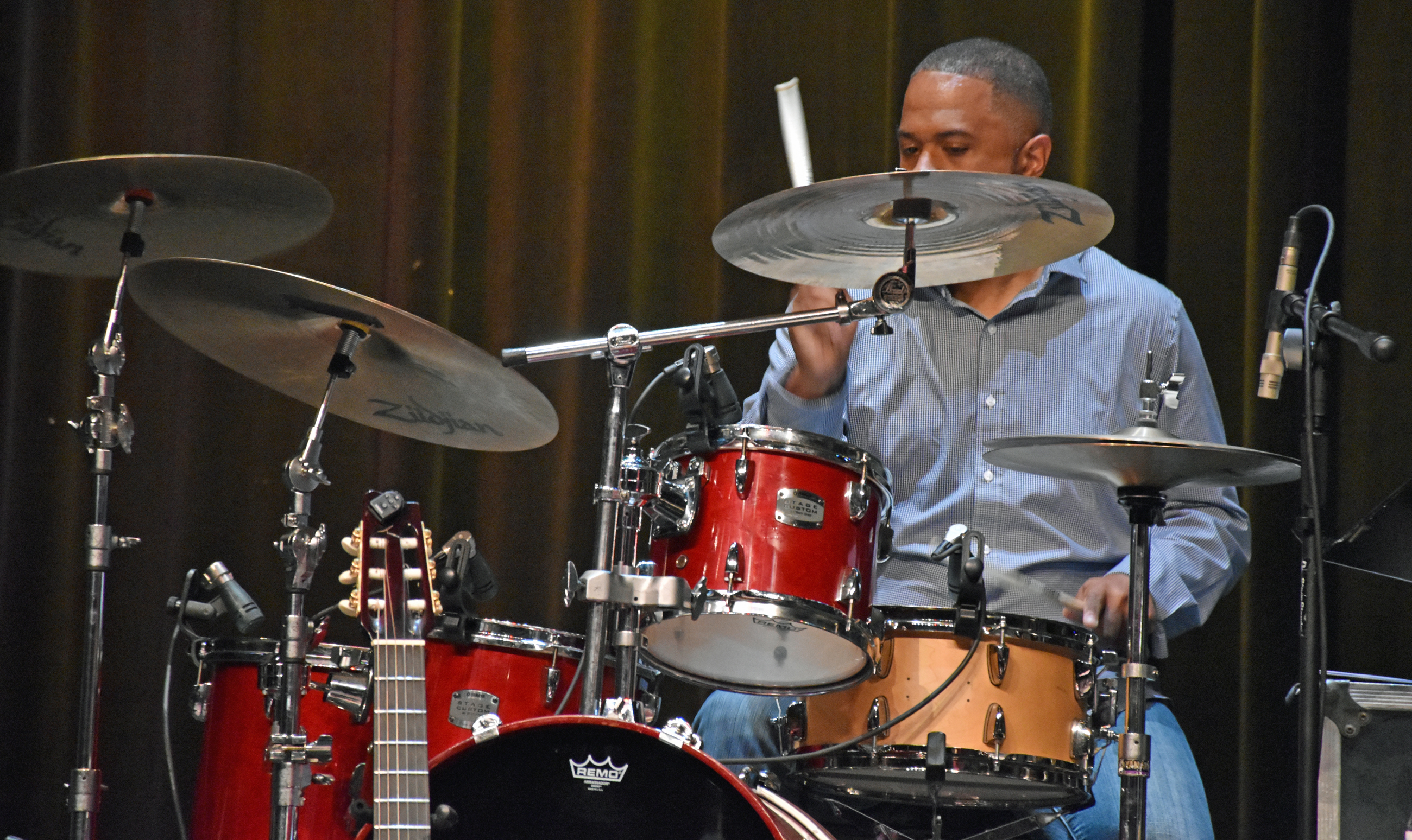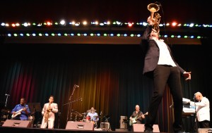 After Kevin introduced Jay Rowe’s house band, he introduced Jay himself. His band was made up of Rohn Lawrence on electric guitar, Dave Anderson on bass, Trever Somerville on drums, and Steve Scales – who graduated from the University of Bridgeport earlier in the day – on percussion.