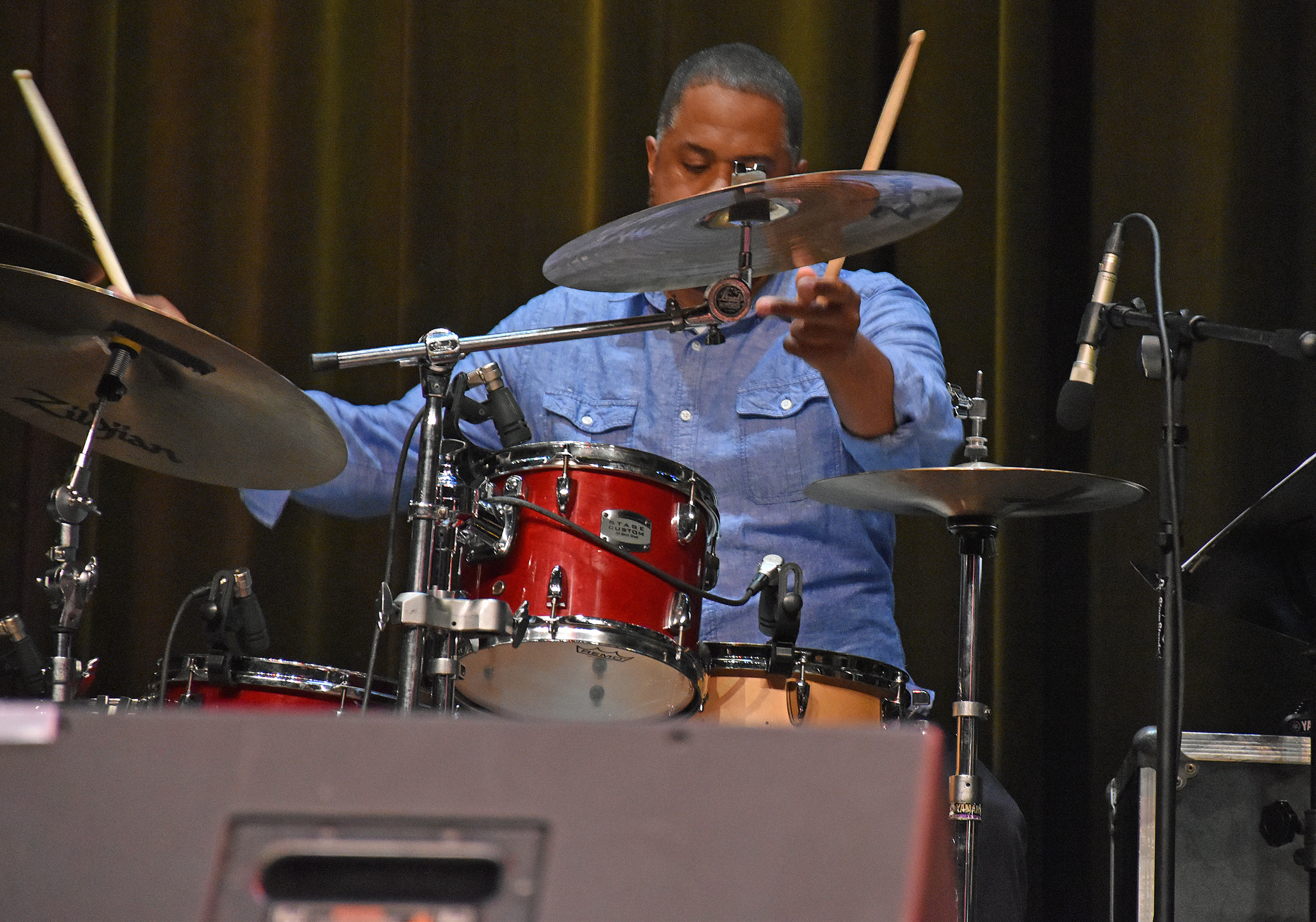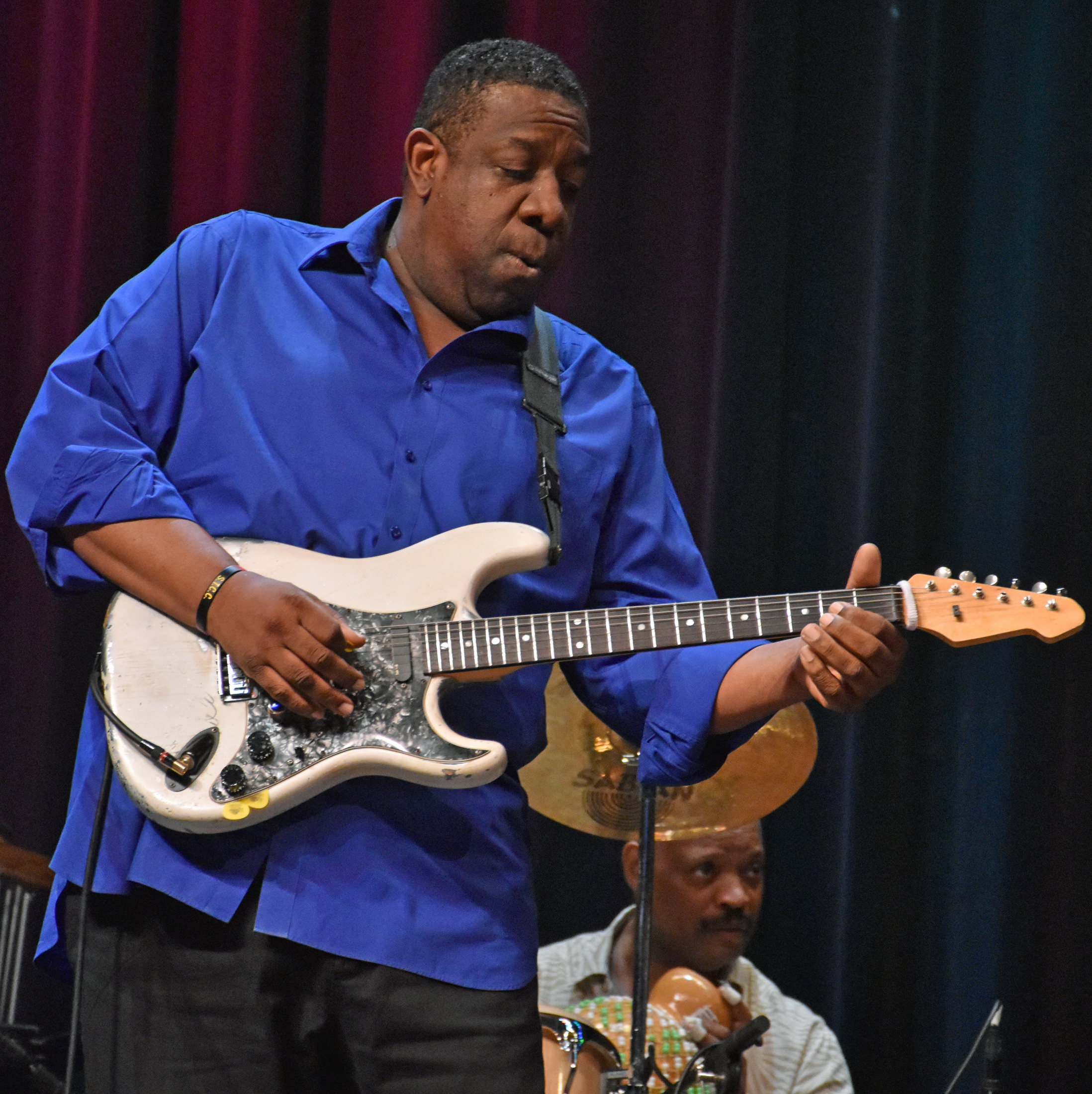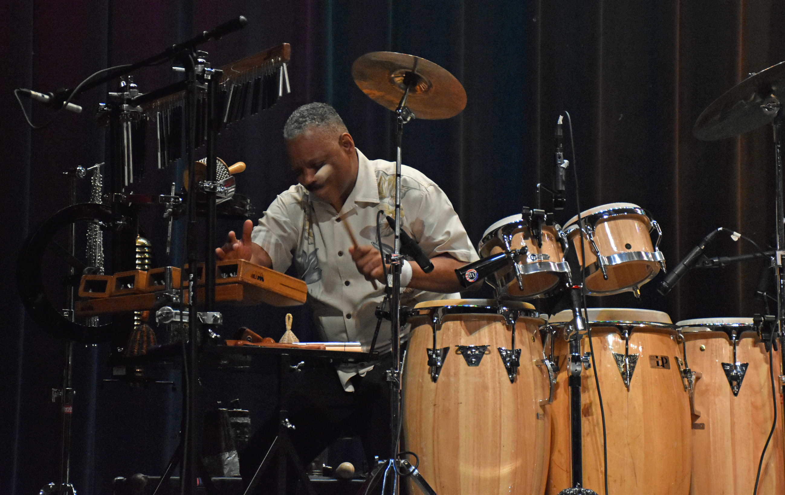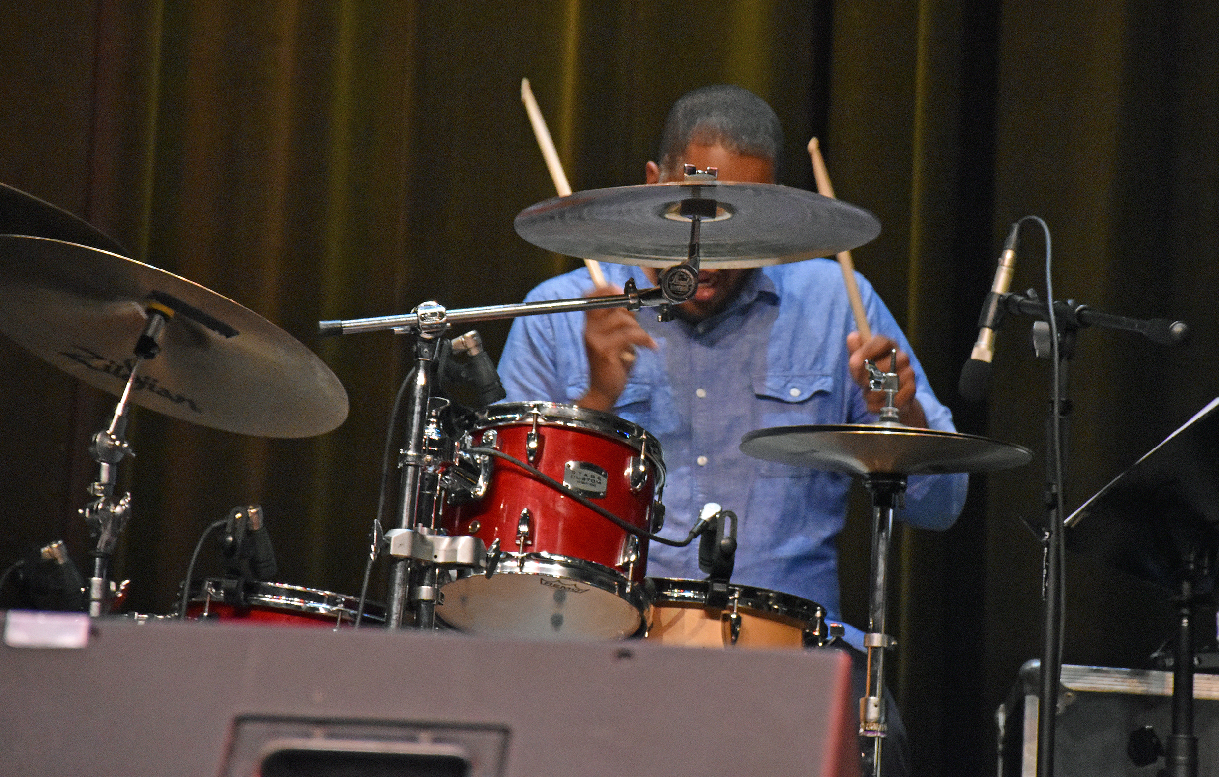 After Kevin introduced Jay Rowe’s house band, he introduced Jay himself. His band was made up of Rohn Lawrence on electric guitar, Dave Anderson on bass, Trever Somerville on drums, and Steve Scales – who graduated from the University of Bridgeport earlier in the day – on percussion.