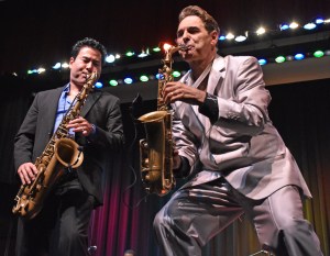 Keyboardist Jay Rowe‘s 15th annual Smooth Jazz for Scholars benefit continued Saturday night with the second of two concerts. The headliners were Chieli Minucci (“key-L-e min-OO-chee”), Steve Oliver, Nelson Rangell (soft g), and Steve Cole.