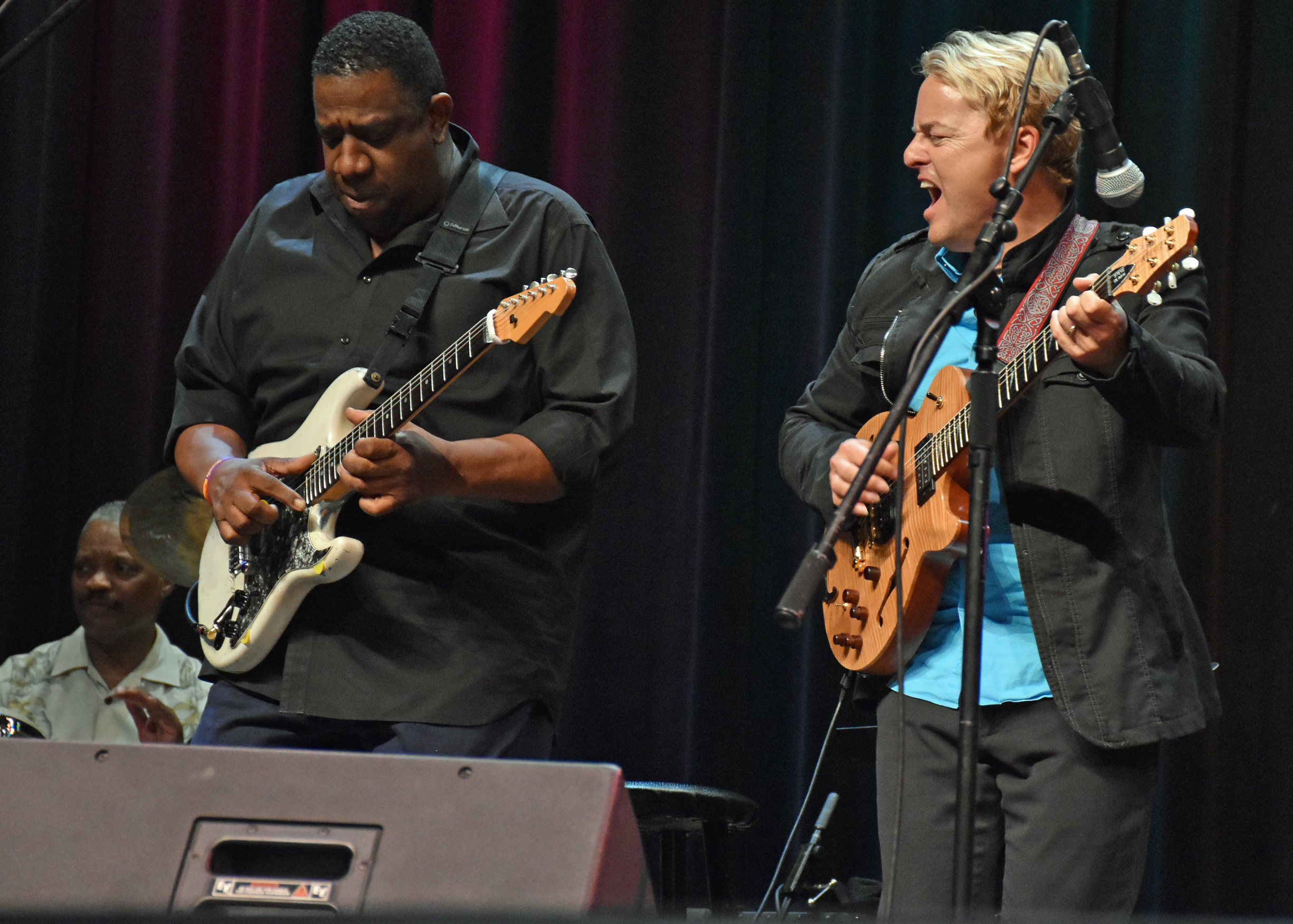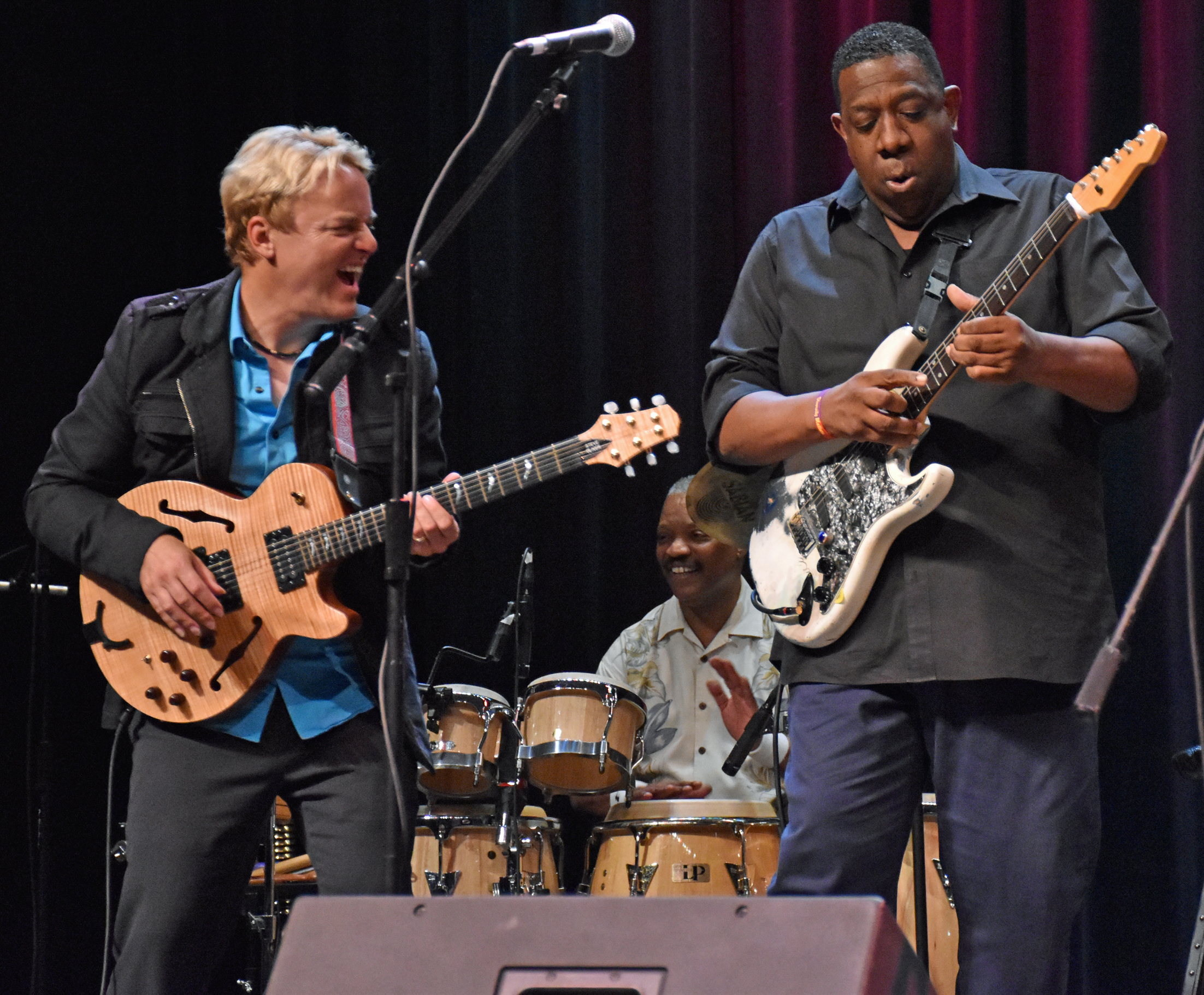Then, it was on to the main event. Jay Rowe’s house band consisted of Rohn (“Ron”) Lawrence on guitar, Dave Anderson on bass, Trever Somerville on drums, and Steve Scales on percussion. Pictures of the band and headliners can be seen below, but first…