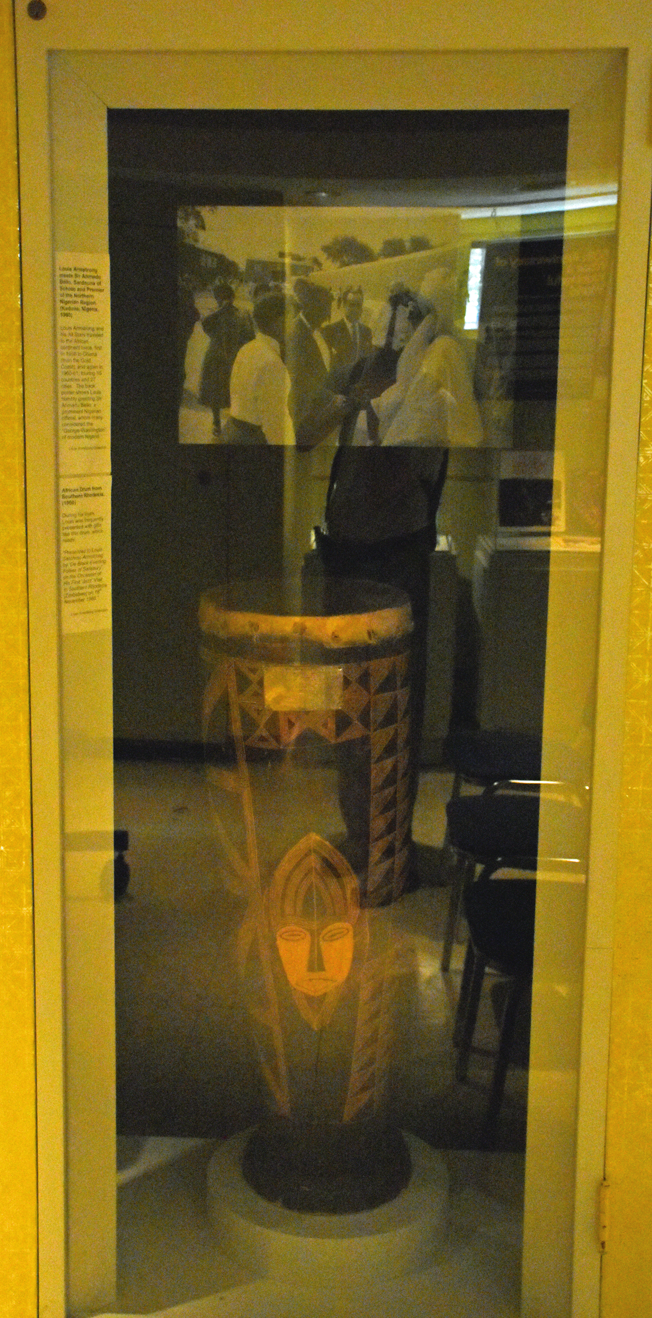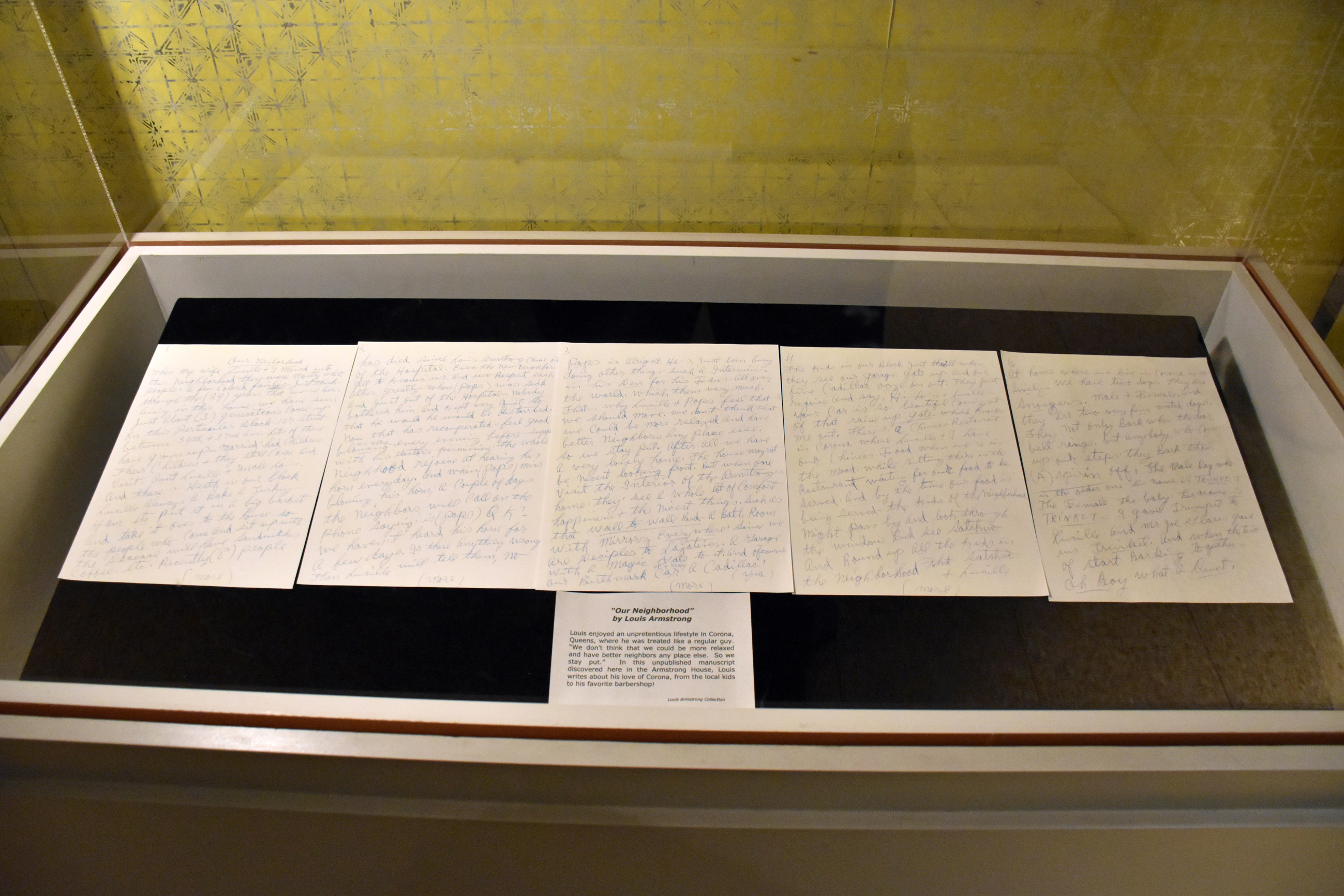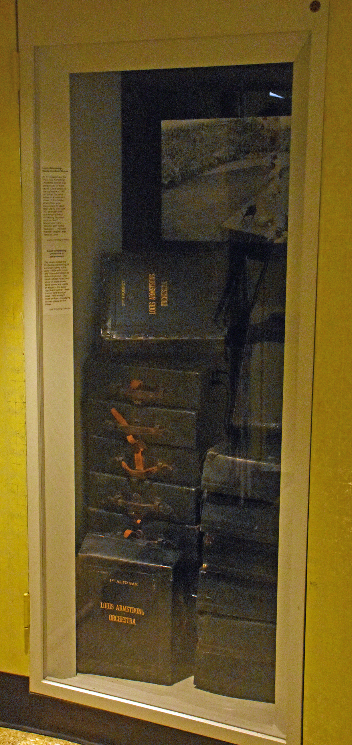 Louis and I have something in common: home speech recordings. His medium was reel-to-reel tape; my media were cassette and microcassette. When I was younger, I would record myself, either talking about what I’d been up to recently, interviewing family members, or co-hosting a “radio show” with my cousin Chris. That last one was also recorded on video. While we were in the den, Elaine played a few examples of Louis’s speech recordings. As we learned later in the tour, he also recorded singing and trumpet improvisation from home.