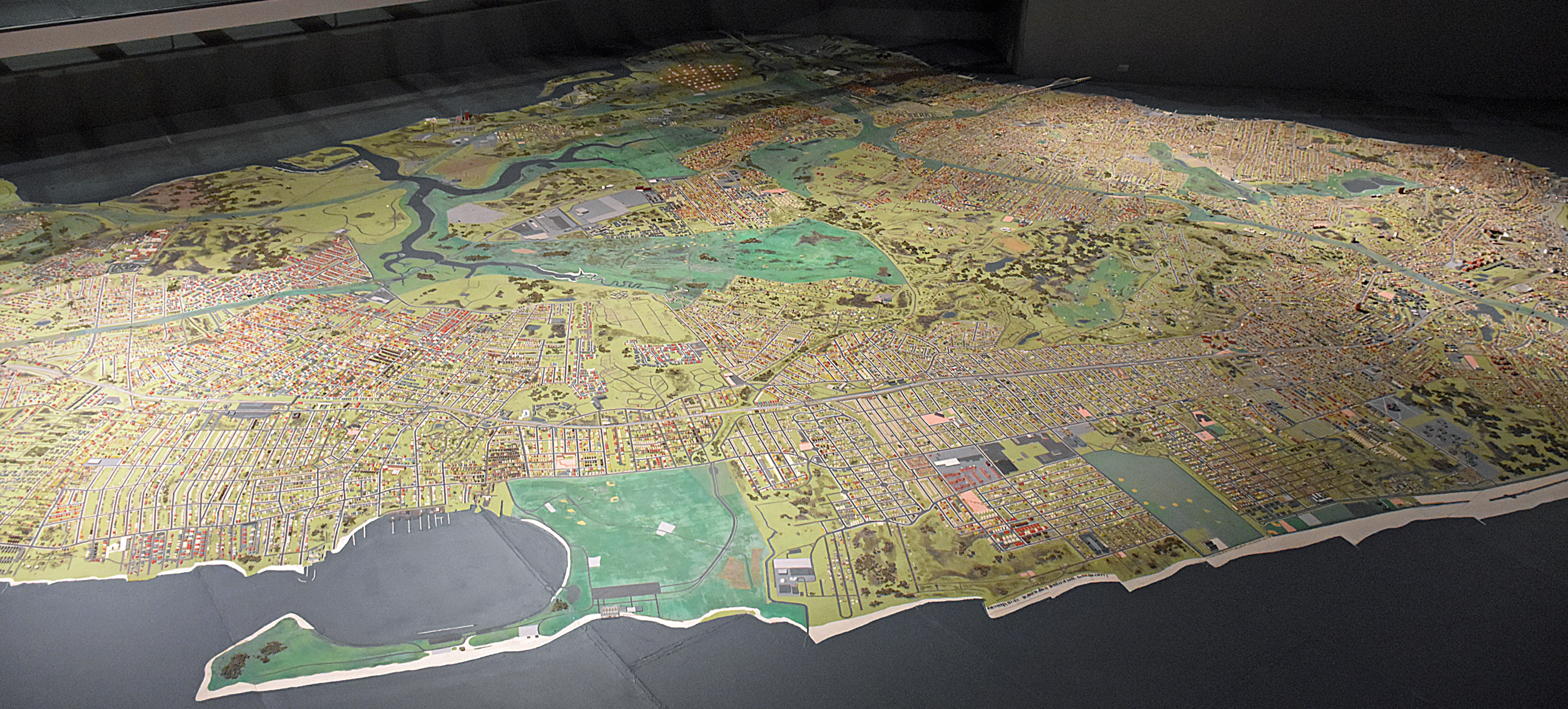 Lori and I looked at a few exhibits in the museum, starting with another relic of the 1964 World’s Fair: the Panorama of the City of New York: