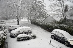 The second nor’easter hit five days later – last Wednesday, March 7. Those ever-changing computer forecast models wavered back and forth from a little wet snow to a lot of wet snow, back to a little, up to a moderate amount, and back to a lot again. The deciding factor was the point when the rain would change to wet snow and how much of it would accumulate. At least the wind wasn’t as bad.