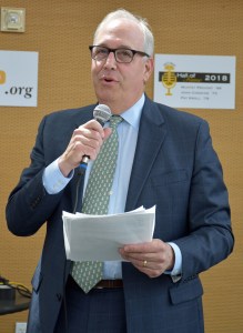 2015 inductee Bruce Leonard introduced Rev. John Commins: