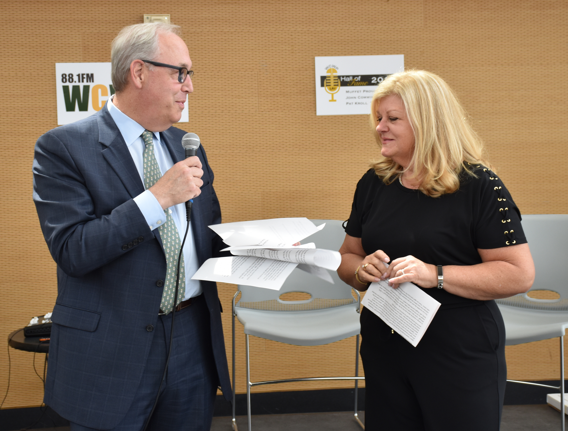 2012 inductee Hank Neimark and 2017 inductee John LiBretto introduced Muffet Provost (“pro-VO”), then interviewed her over the phone: