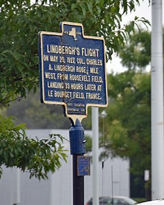 I left for the Cradle of Aviation Museum at 10:20. A light rain fell in the wake of thunderstorms that plowed through an hour earlier. By the time I arrived, there was only drizzle. I had to wait in line to present my ticket and get wristbands for both days. While waiting, I photographed a couple of historic markers: