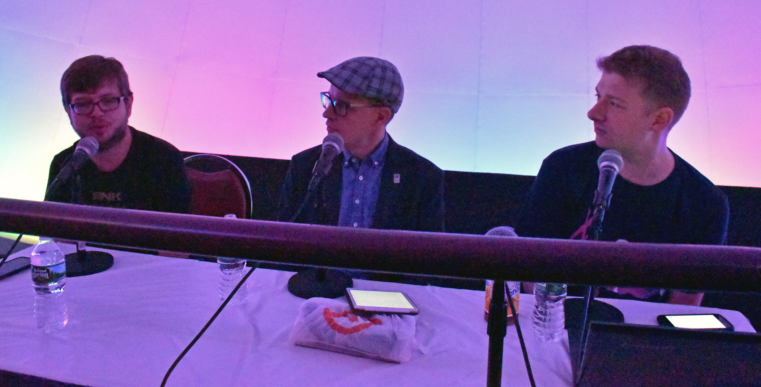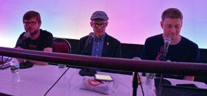 First panel up, Jeremy Parish (center) with Kurt Kalata (left) and Rob Russo (right) of Hardcore Gaming 101: