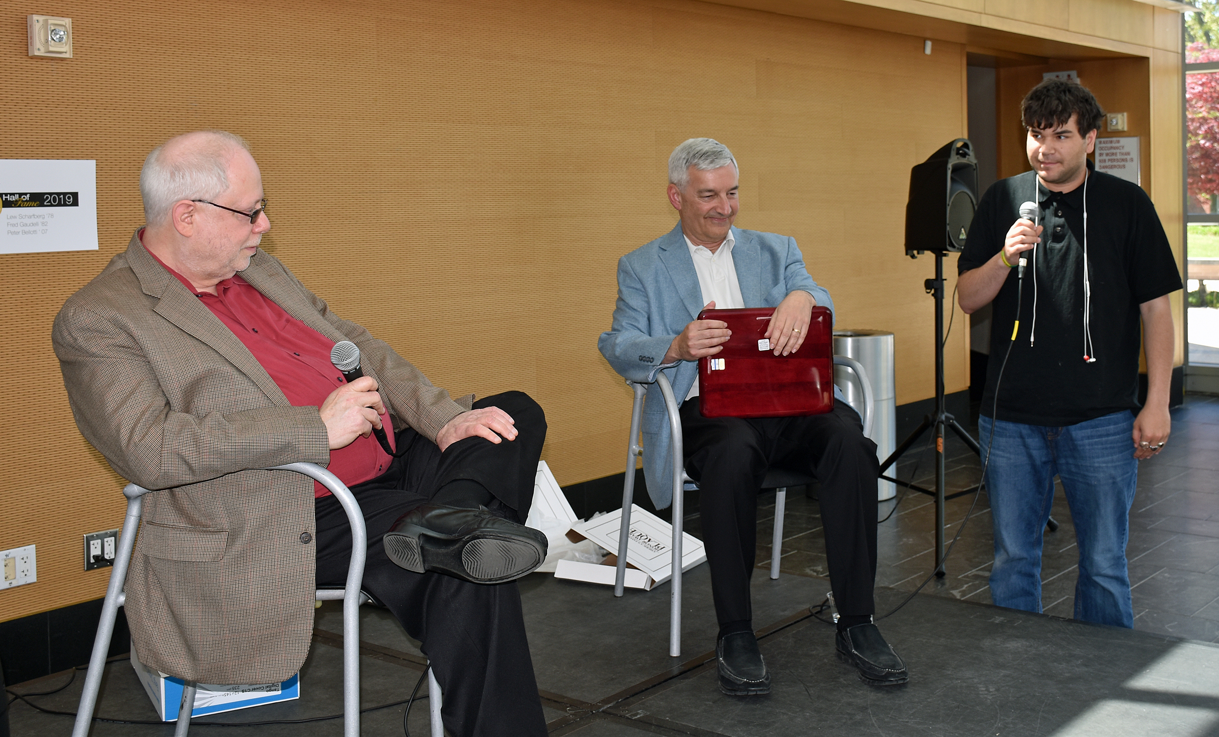Photo ops, starting with the three inductees: