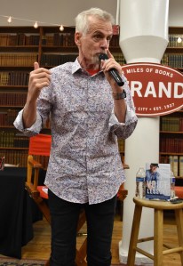 Referring to the sign behind him, he quipped: “I like how this is ’18 miles of books,’ and now it’s 18 miles and one inch.”