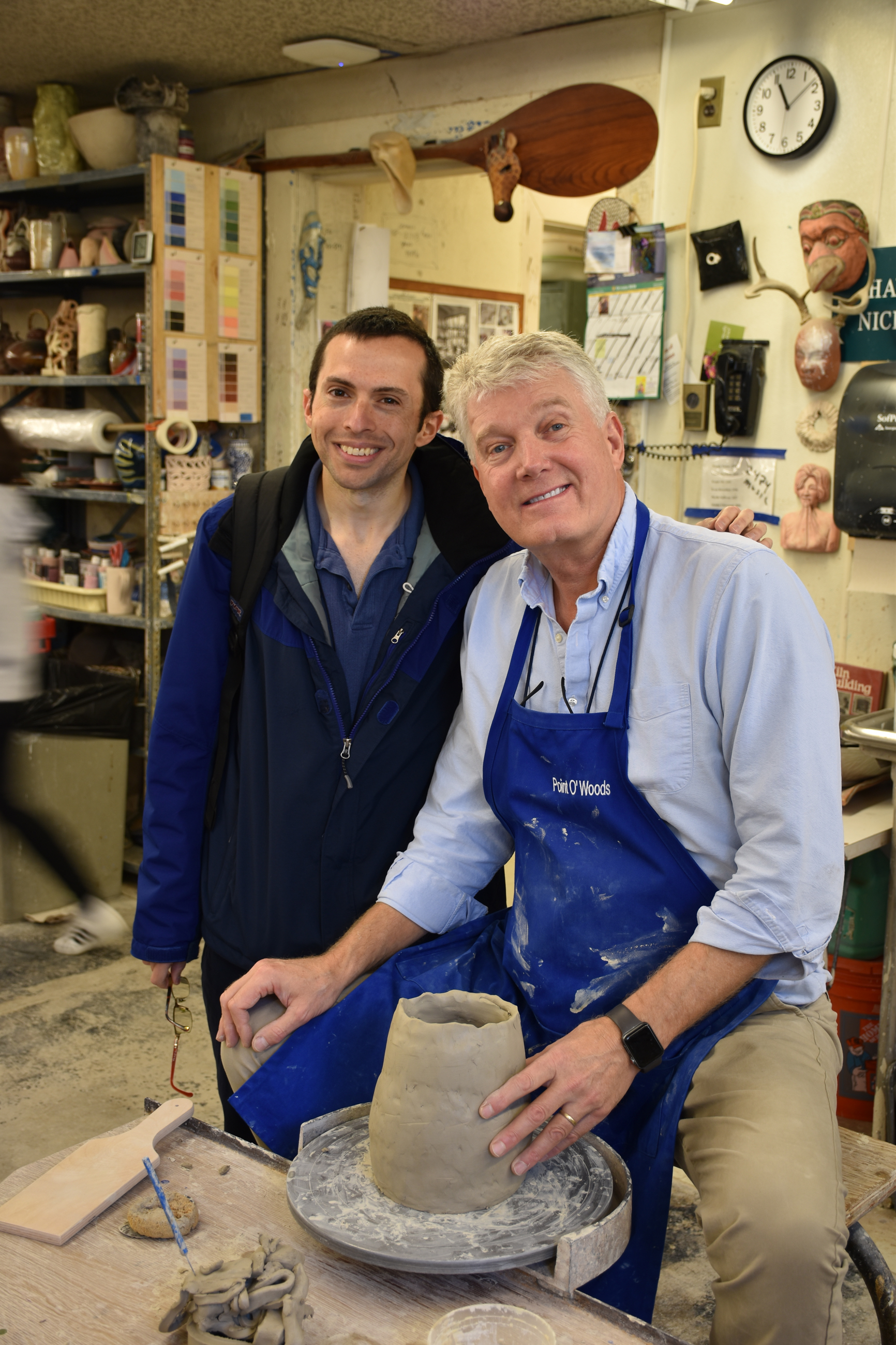 Frank and I posed for a picture as he sat at a pottery wheel: