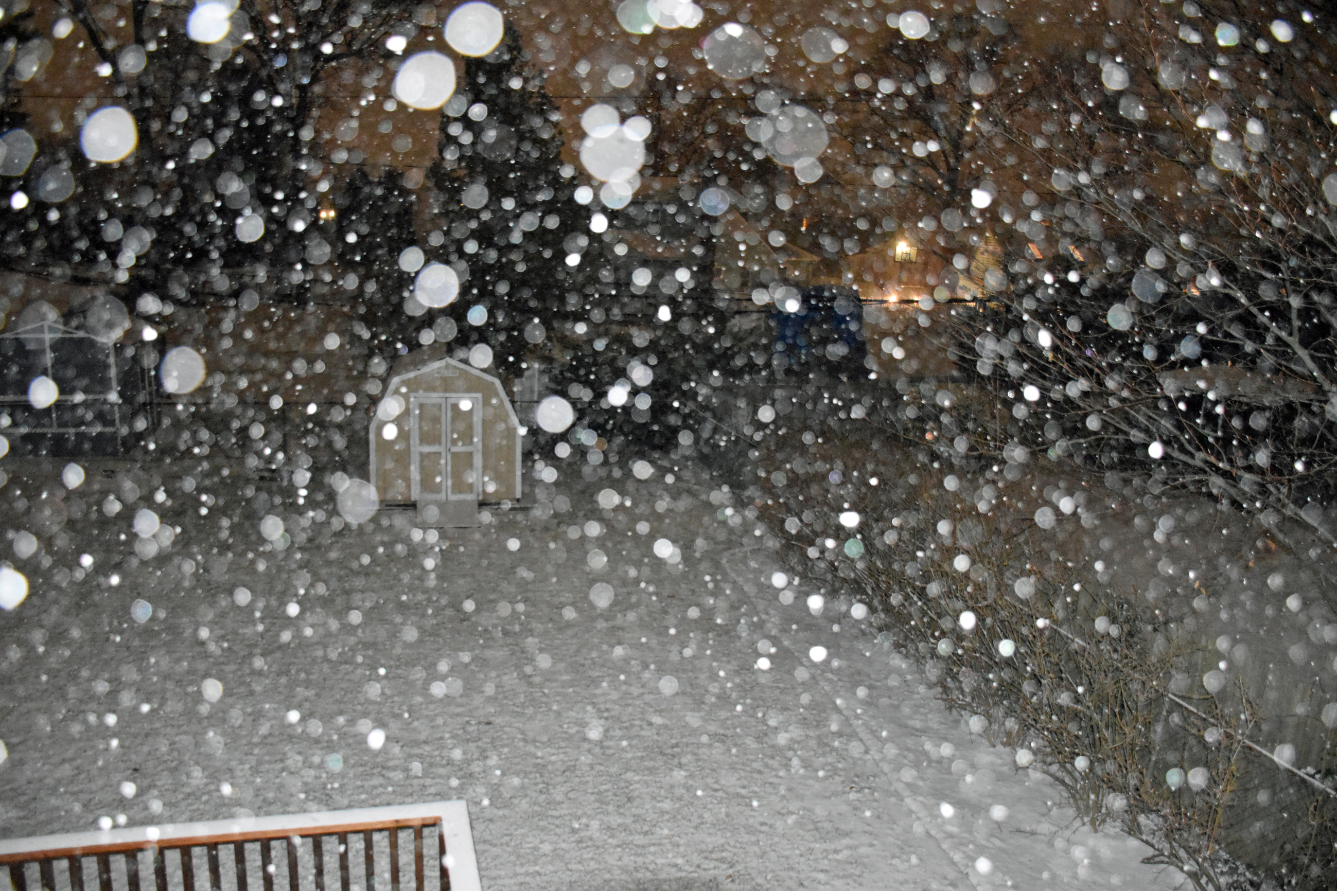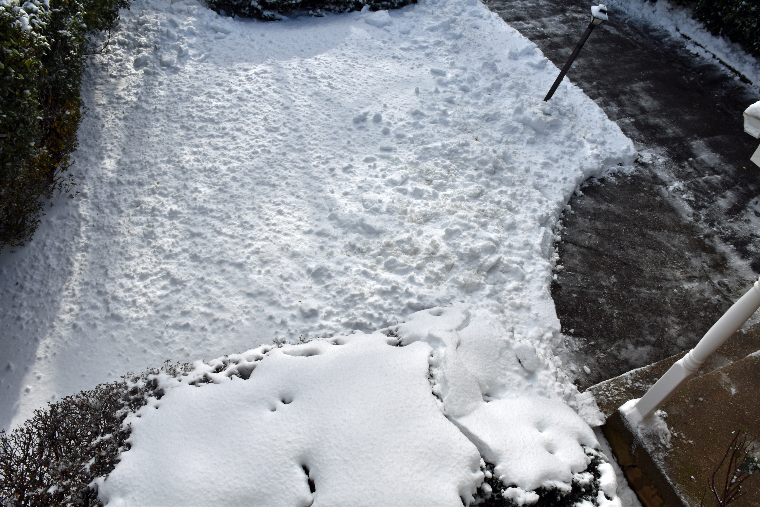 Unfortunately, snow continued to fall as I shoveled and Dad used the snow blower. After a shower, I noticed the skies had cleared, so I attempted to shovel again after the next few photos at 12:16 PM: