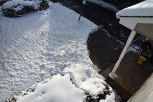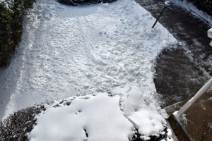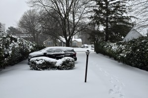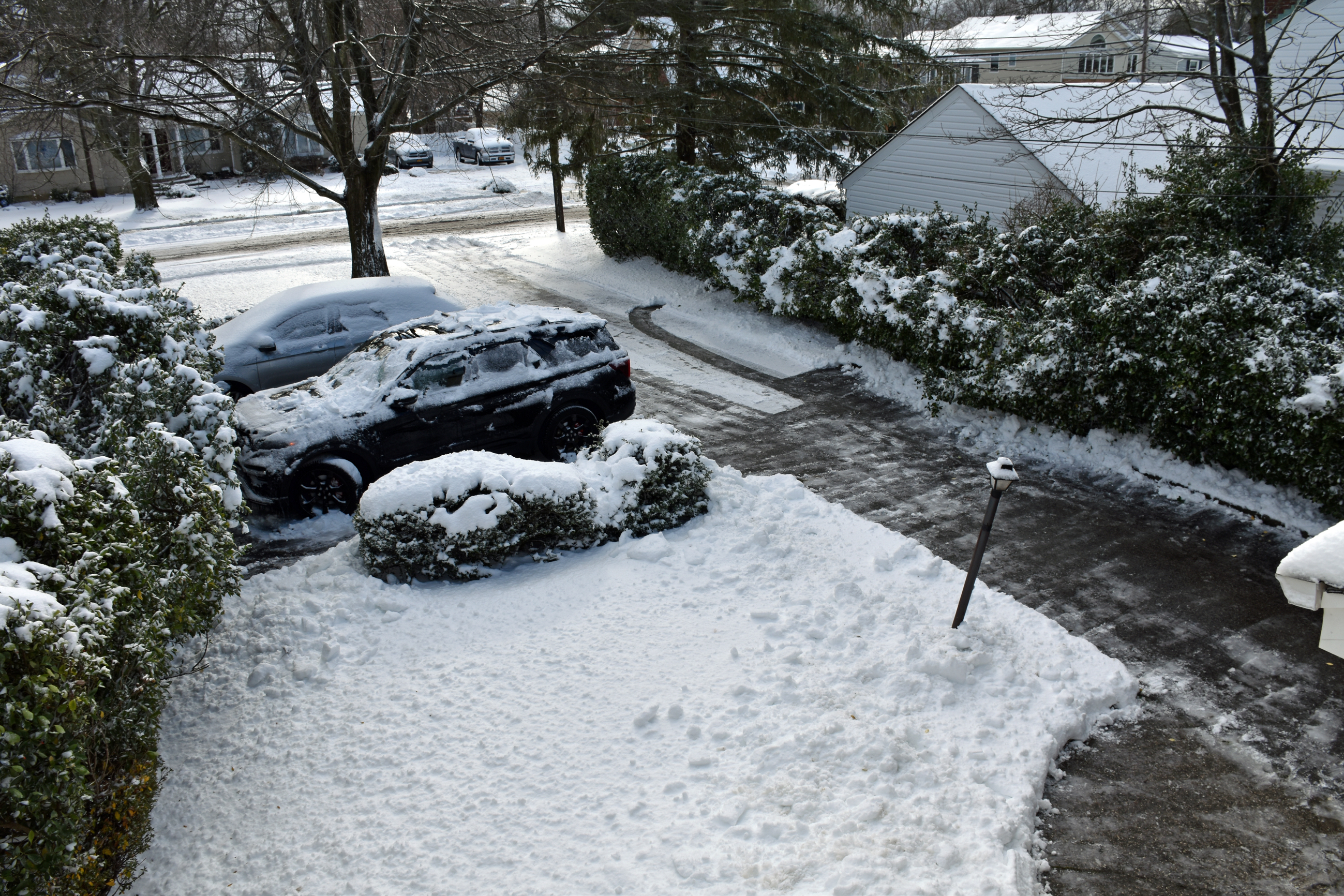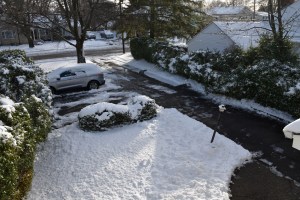 The snow was too dense for me to shovel entirely, so I gave up after about 20 minutes. I felt defeated, and said as much on Facebook, but was reassured by my friends and Dad. These photos were taken at 12:44 PM:
