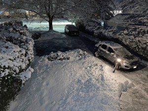 By the time I returned to my room at 10:13 after running on the treadmill, snow had begun: