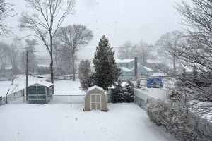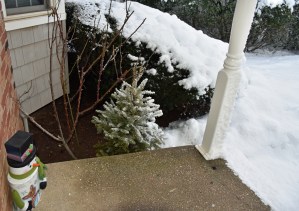 My dad Bill took these backyard photos from the back door at 4:54 while the snow was winding down: