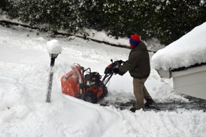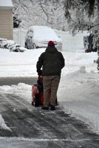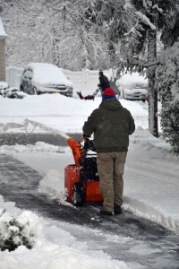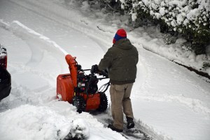 By 5:07, snow blowing had commenced: