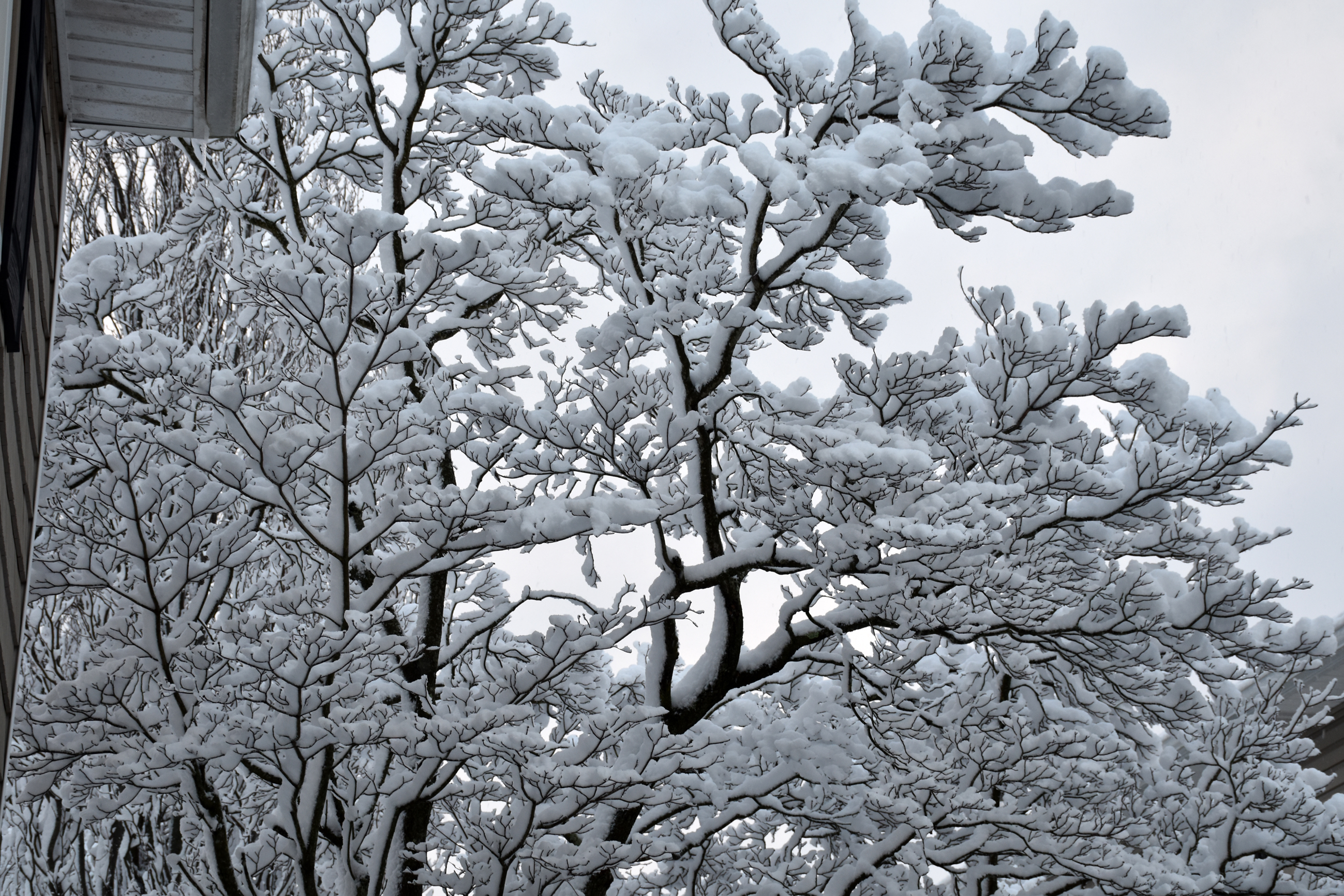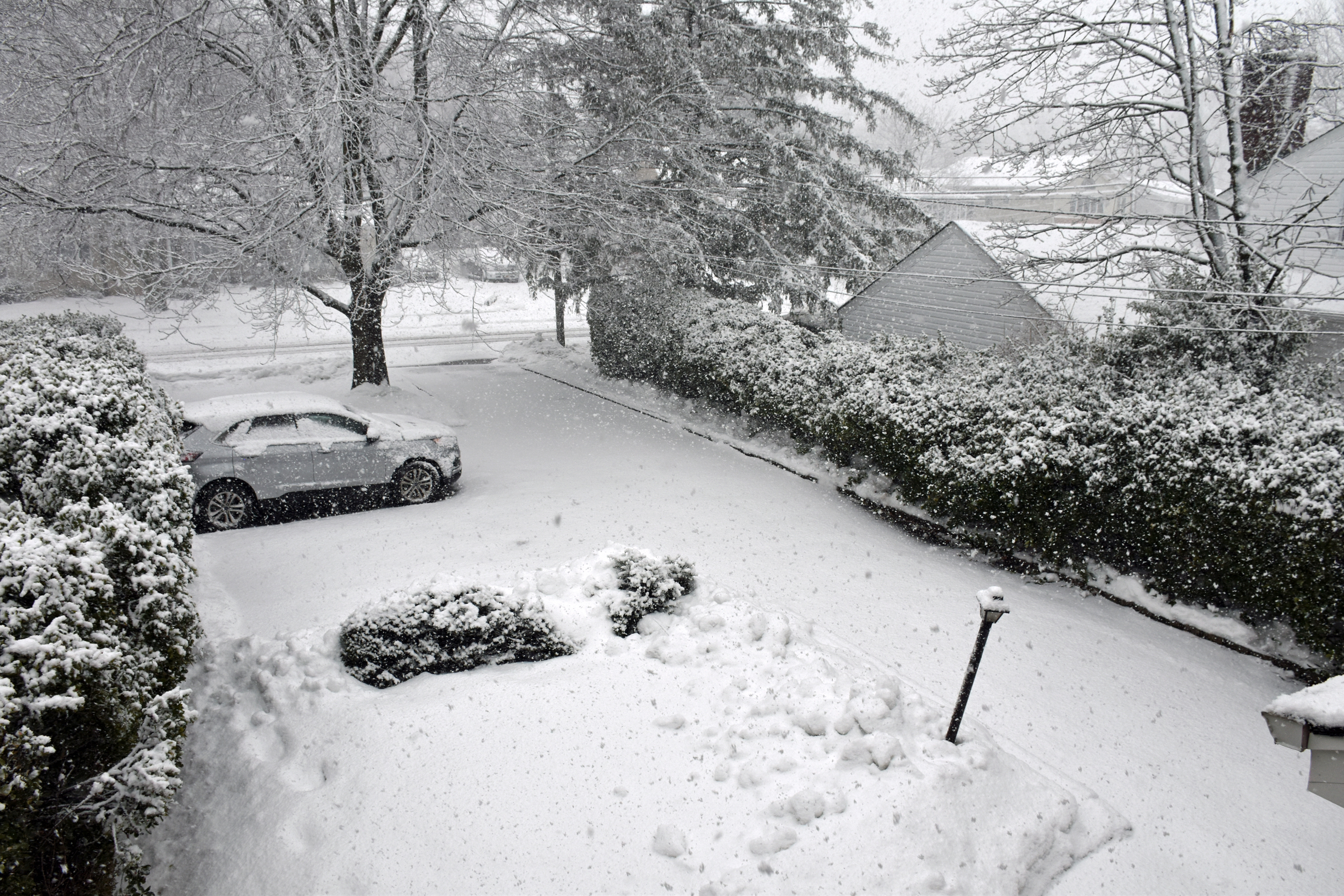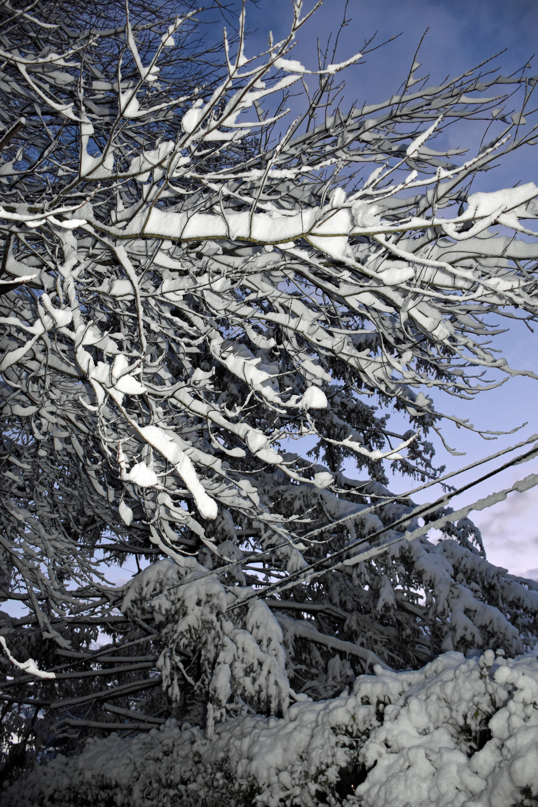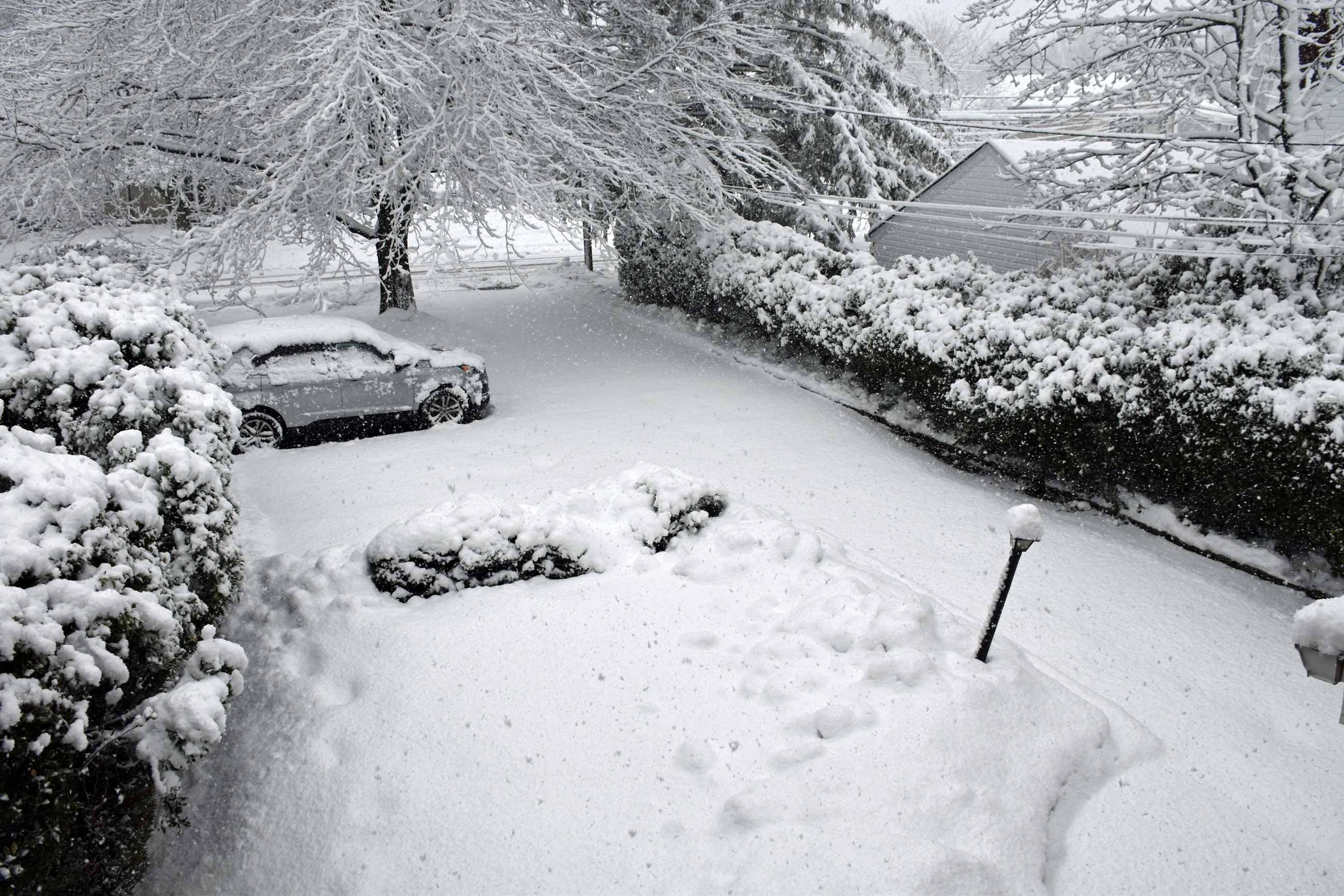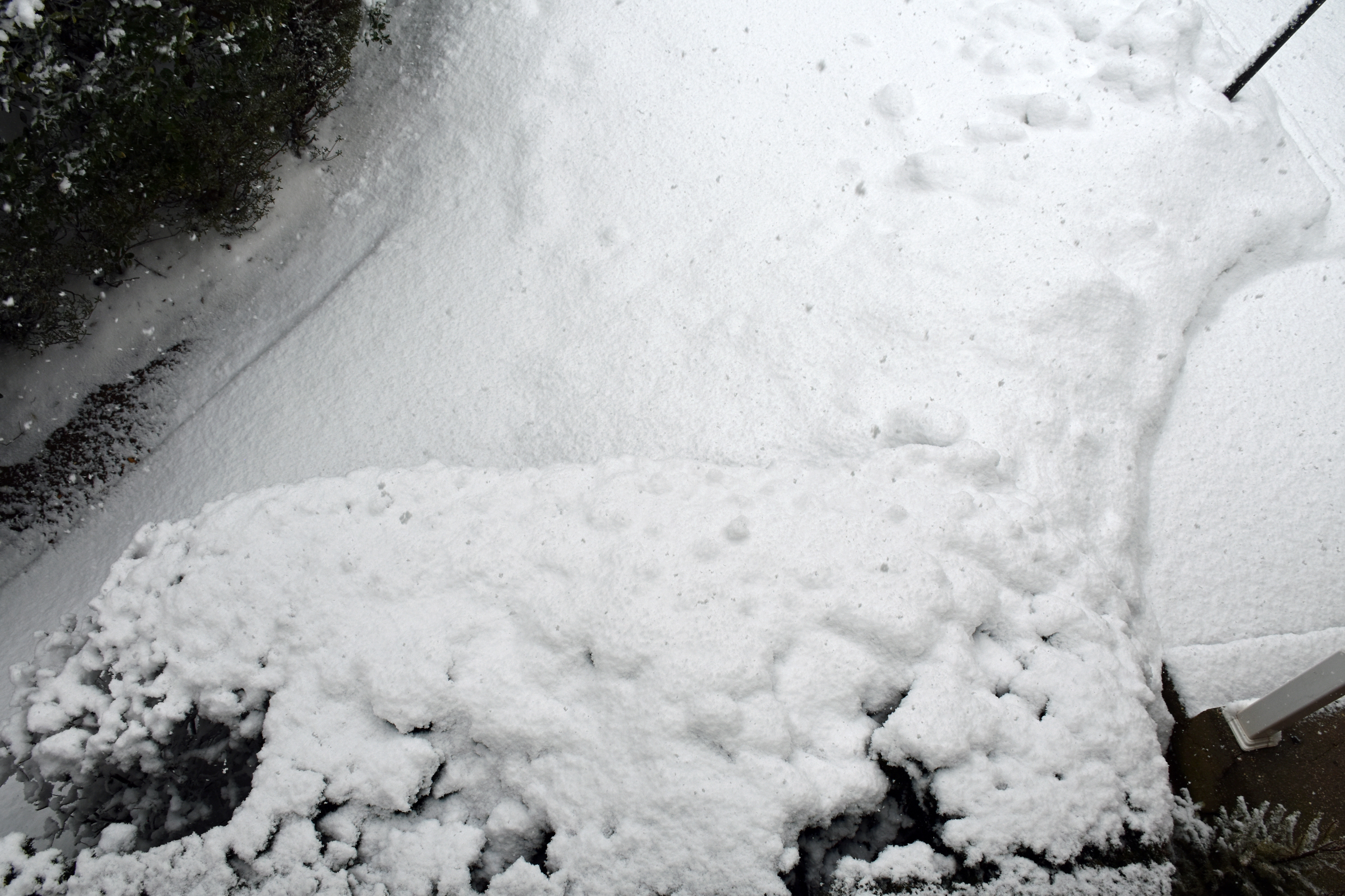 My dad Bill took these backyard photos from the back door at 4:54 while the snow was winding down: