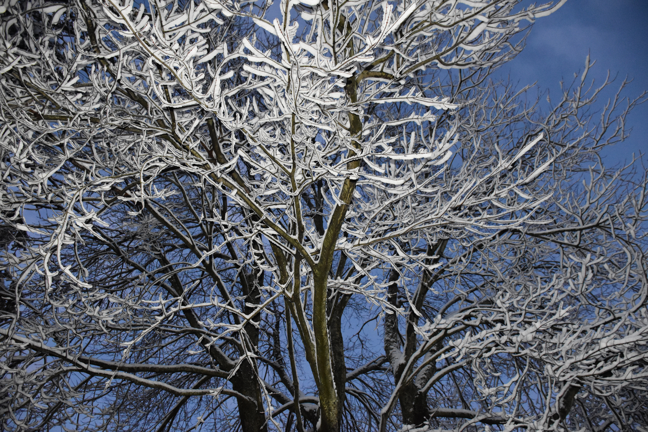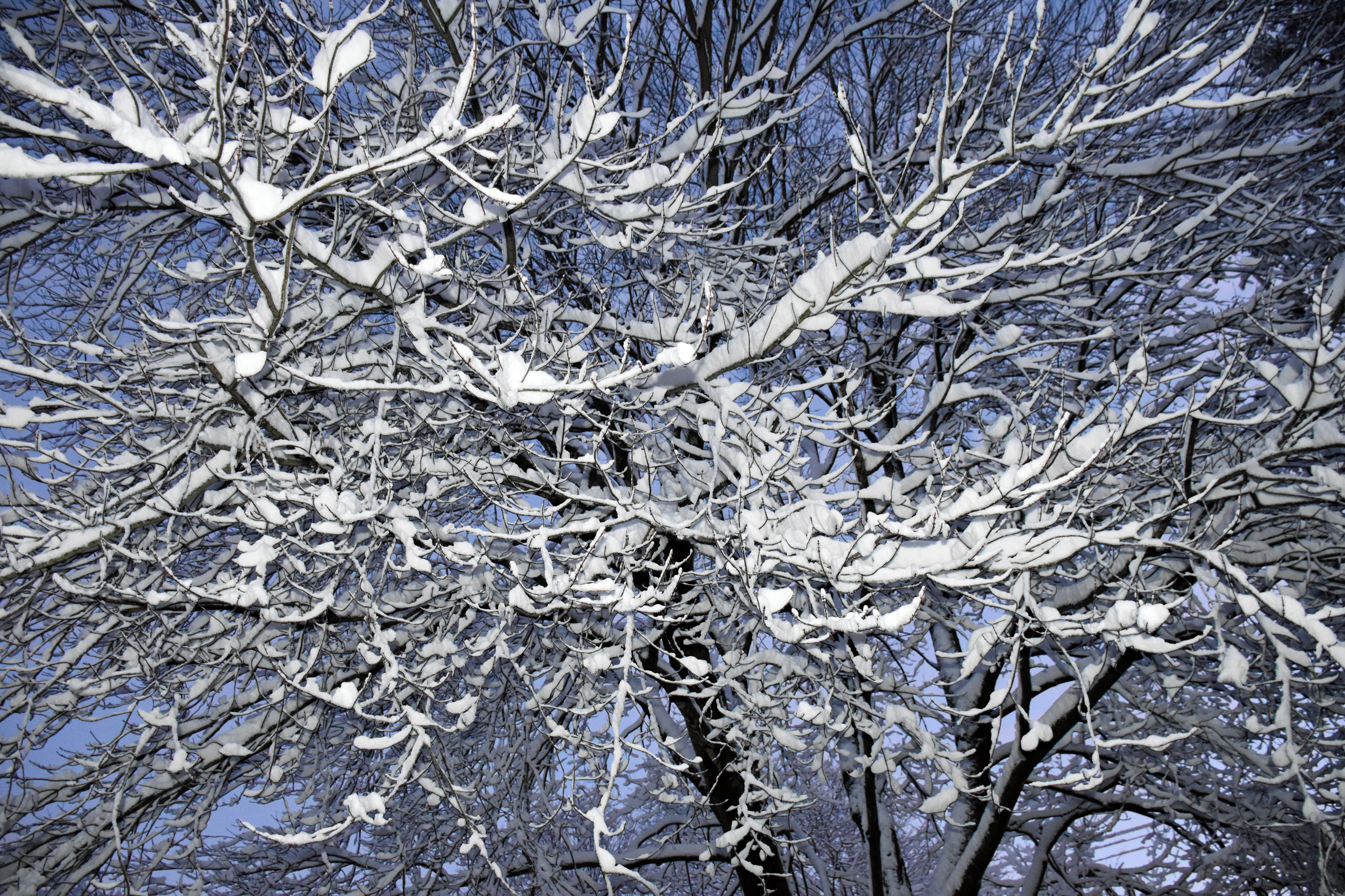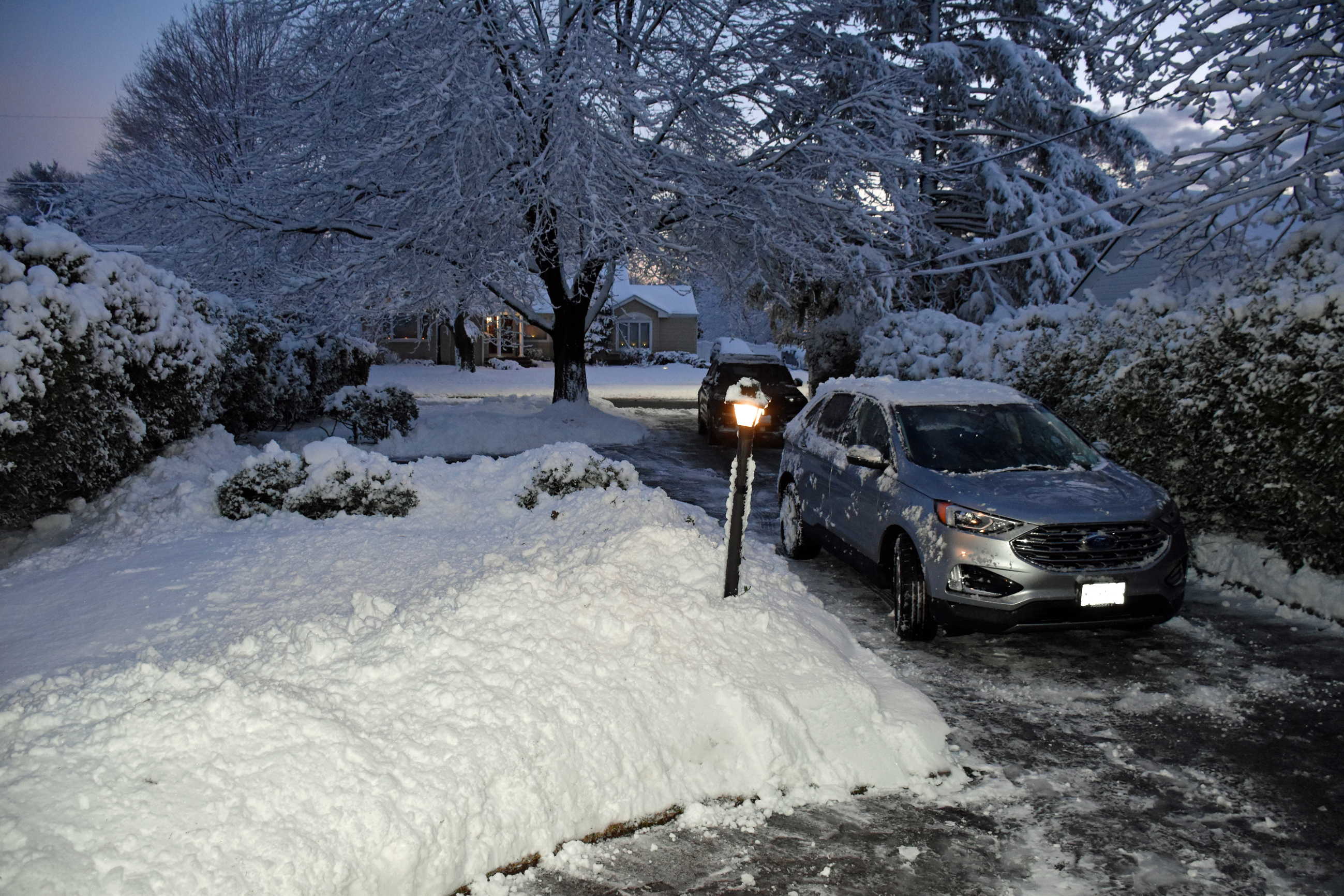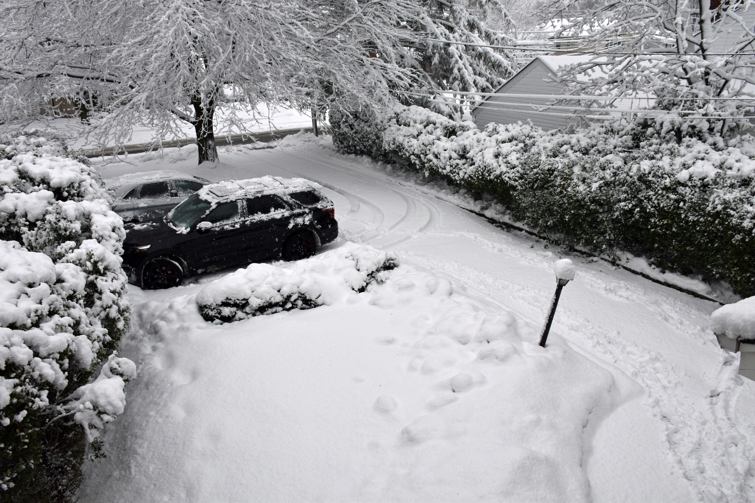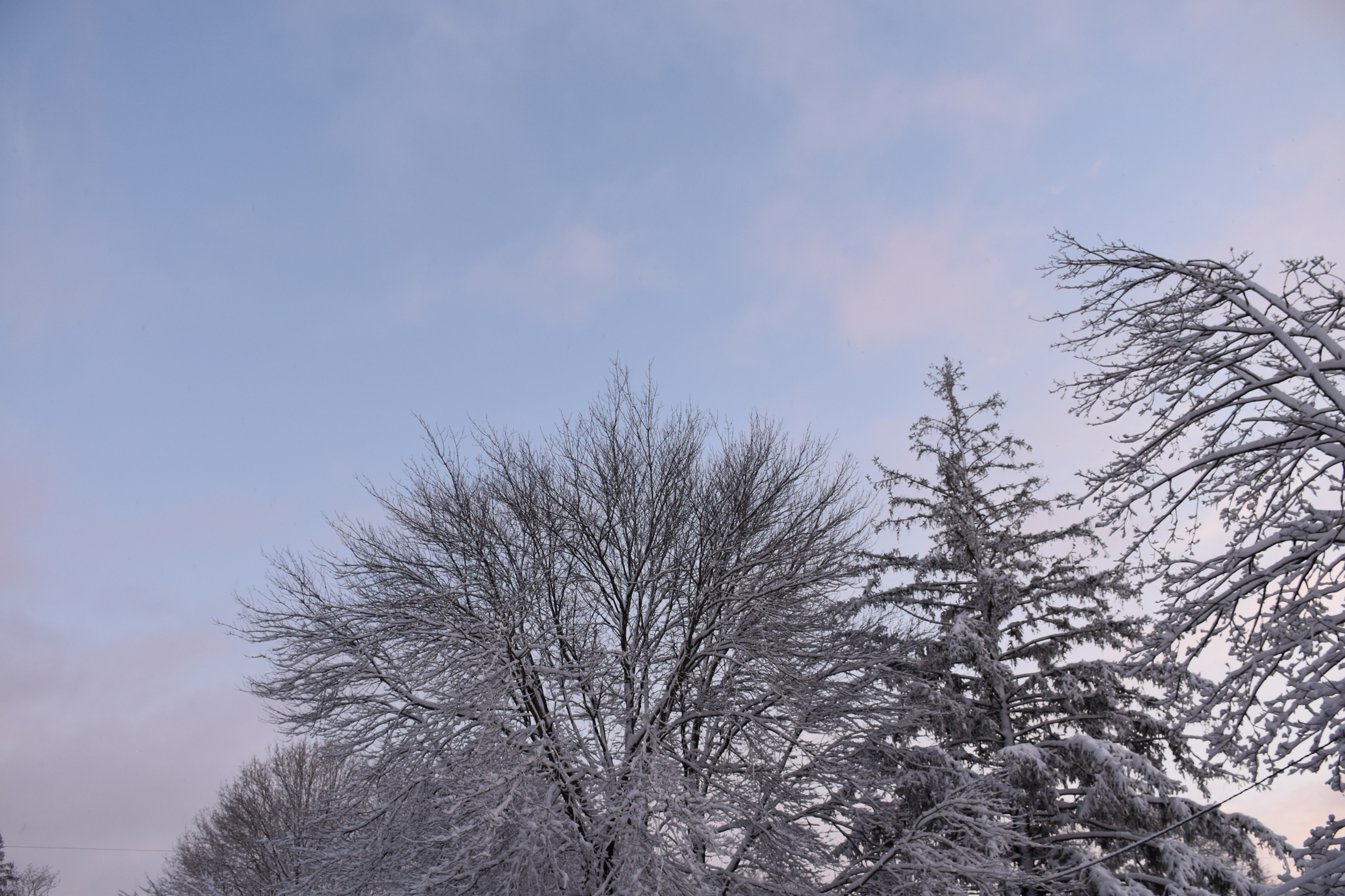My dad Bill took these backyard photos from the back door at 4:54 while the snow was winding down: